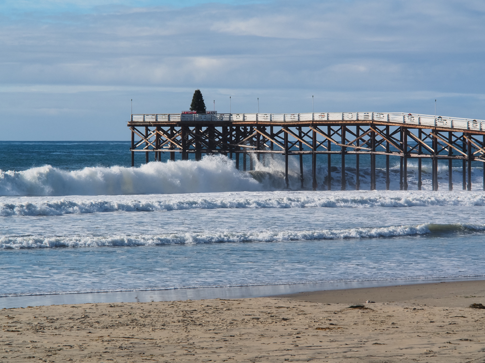 surf. Note the Christmas tree on the end of the pier.