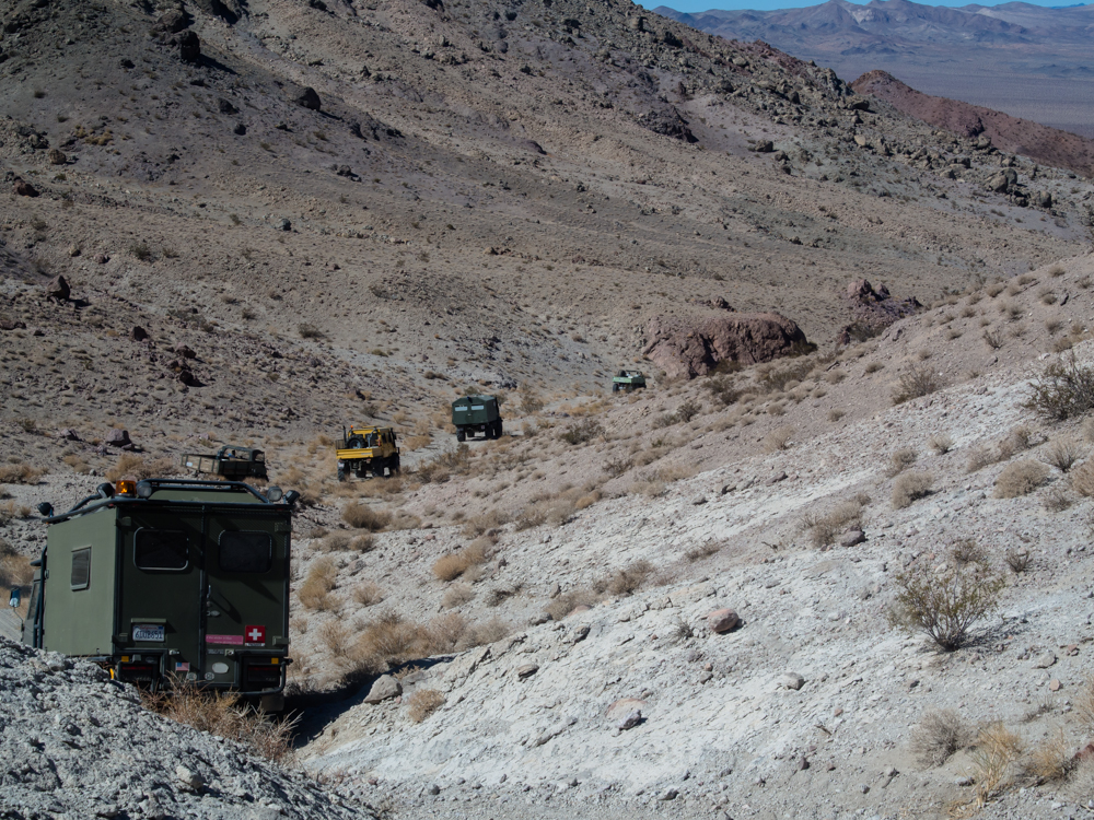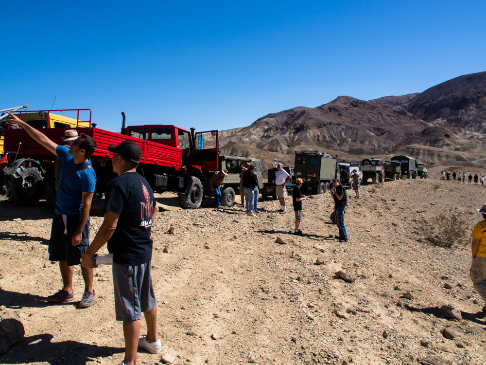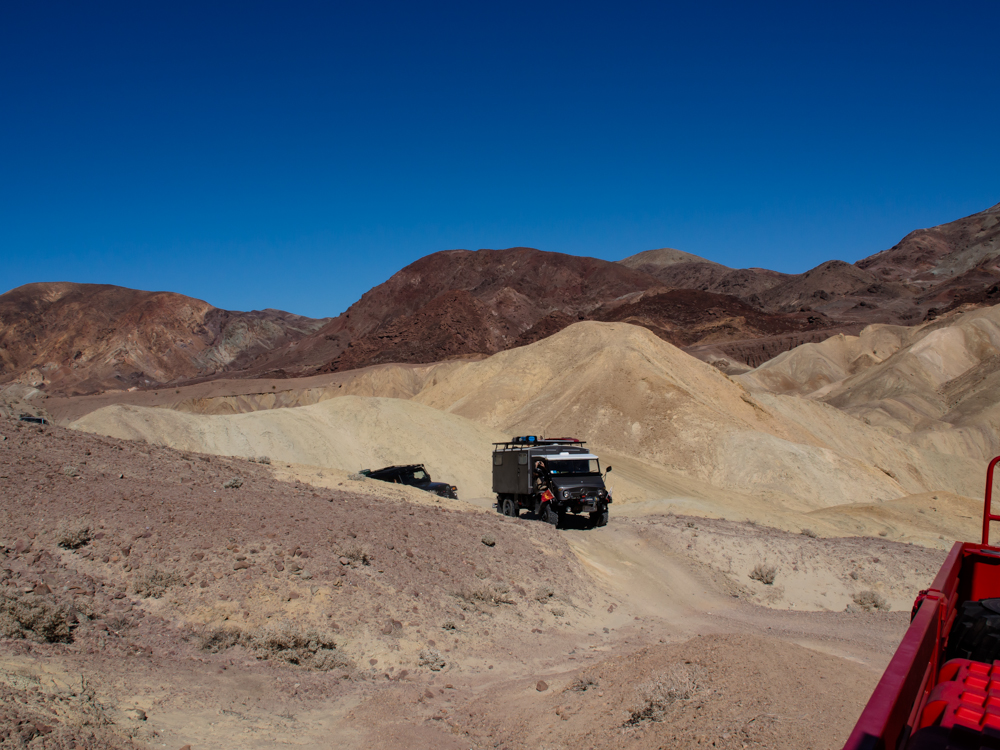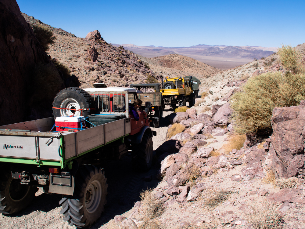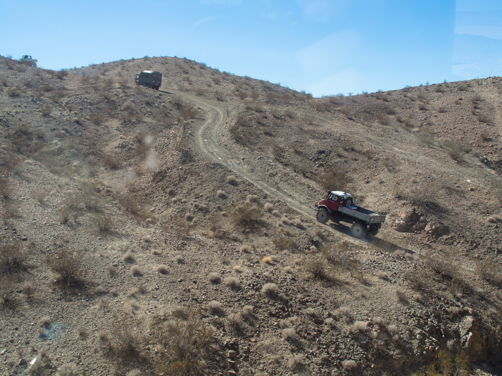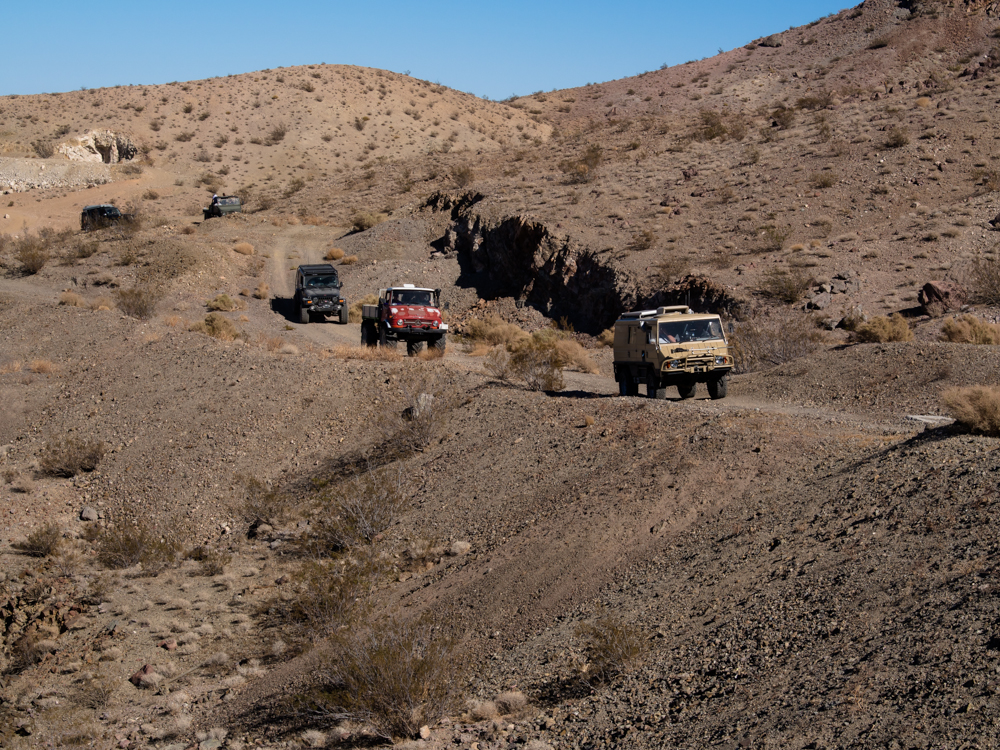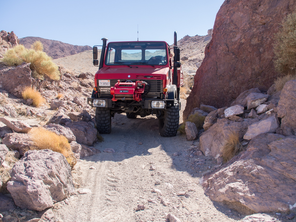 We hit a narrow spot in the trail that required the bigger trucks to look it over carefully.