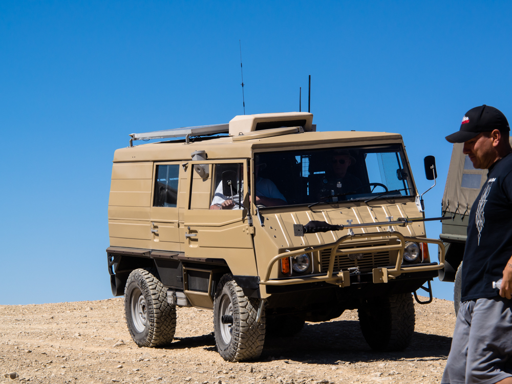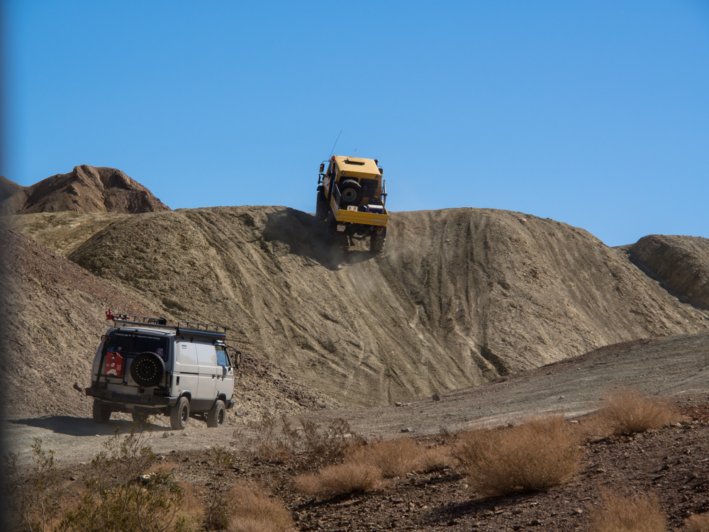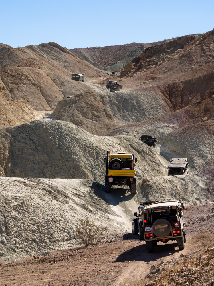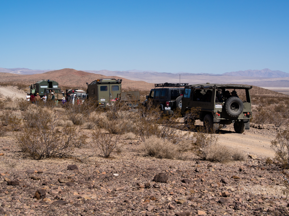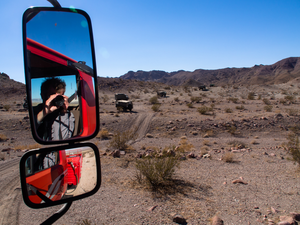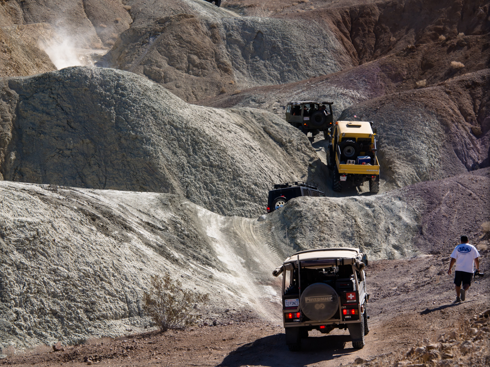 We hit a narrow spot in the trail that required the bigger trucks to look it over carefully.