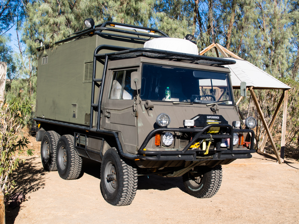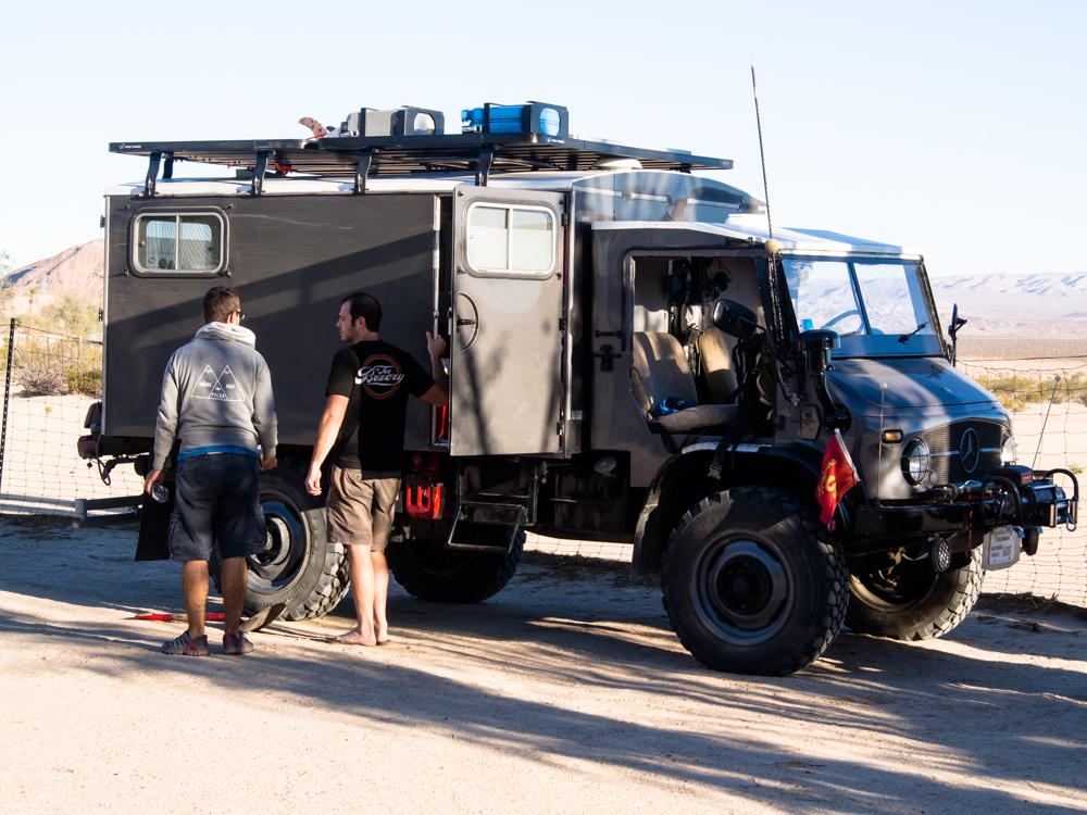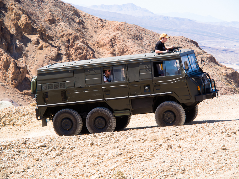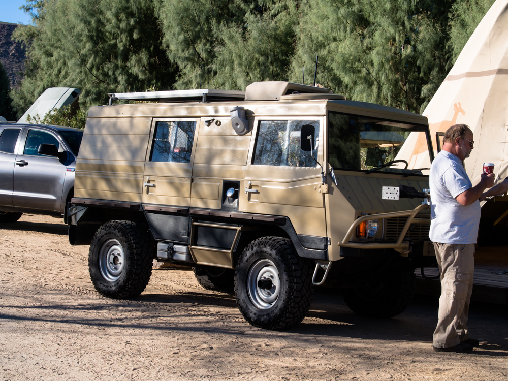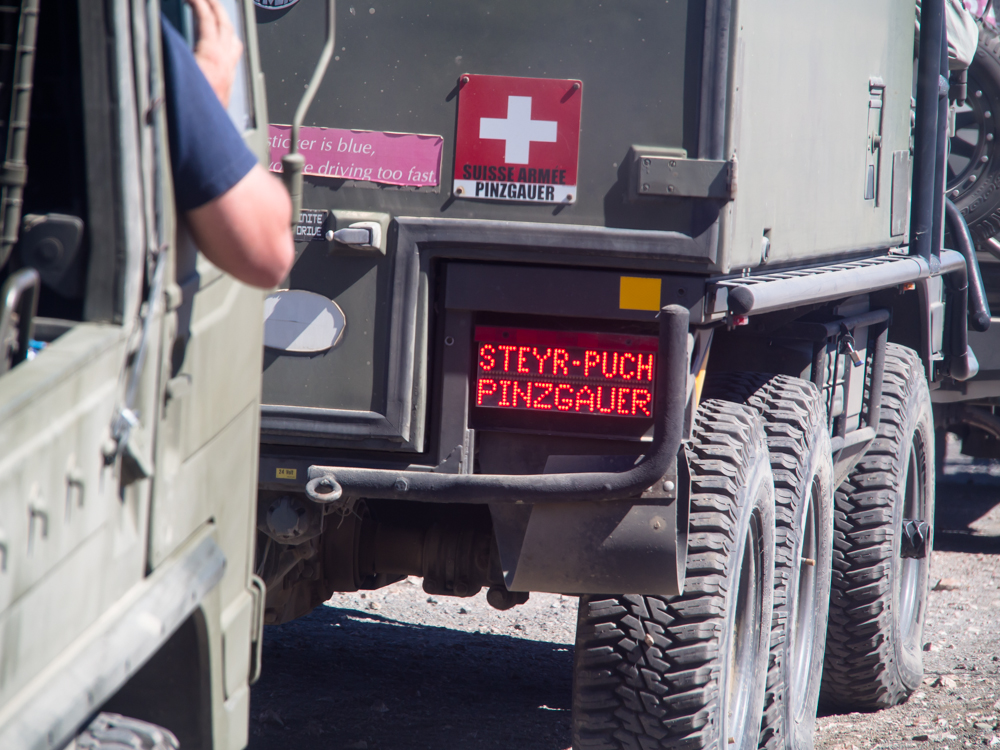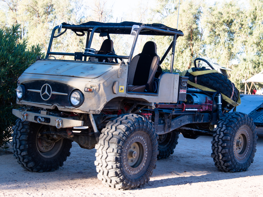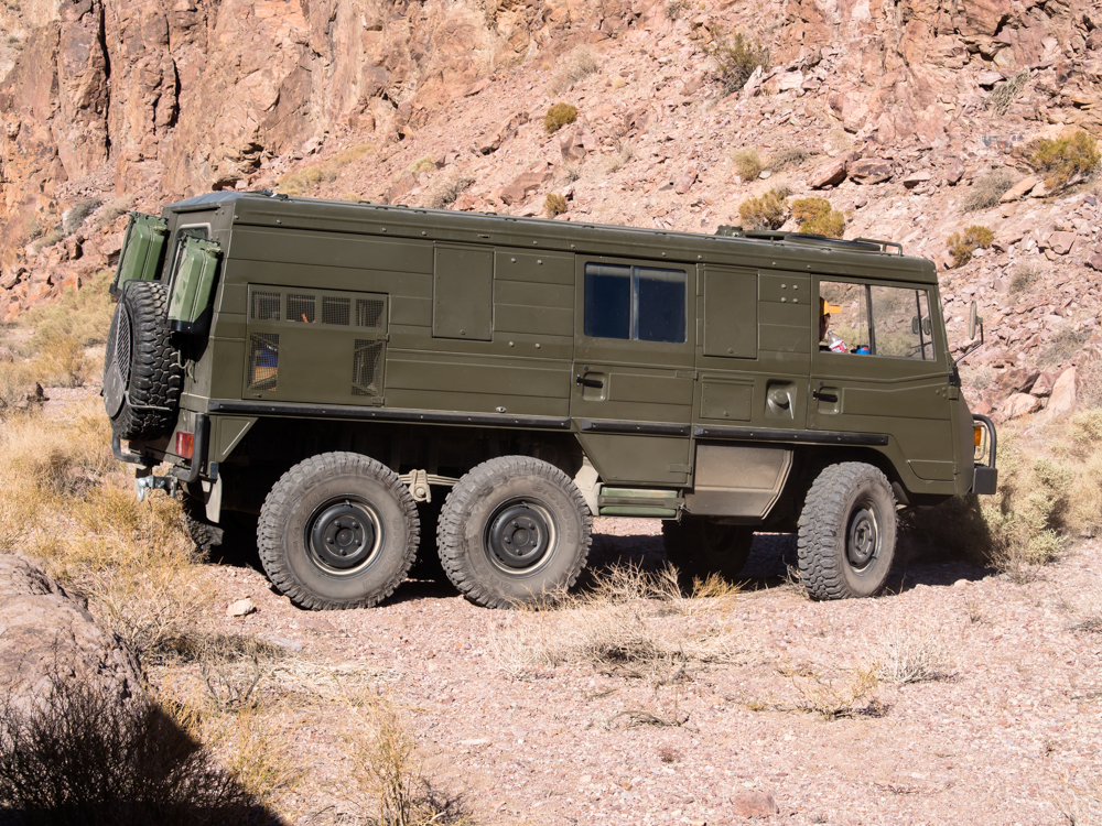We hit a narrow spot in the trail that required the bigger trucks to look it over carefully.
