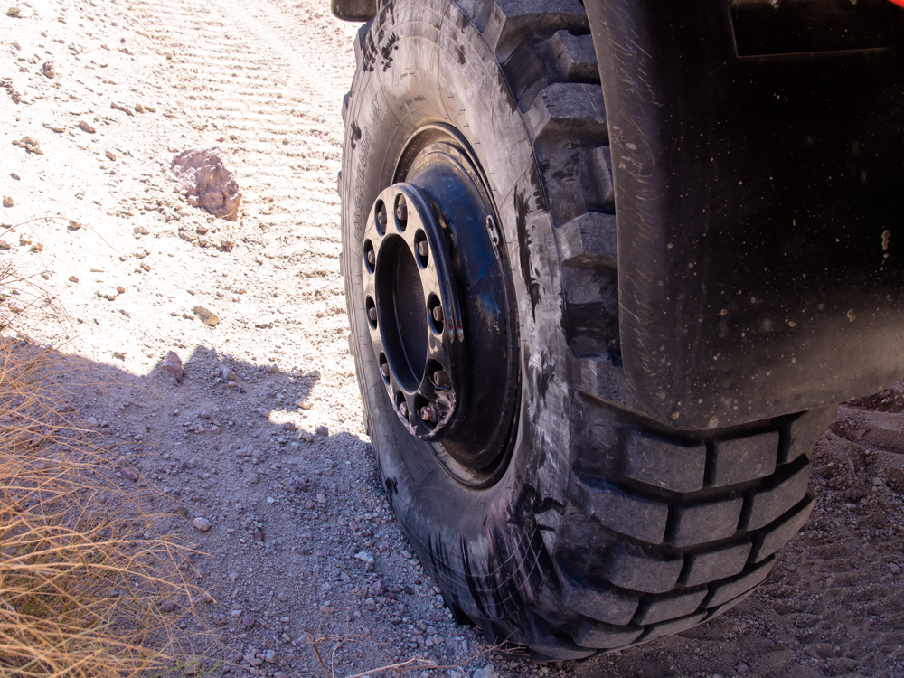 The tight spot did some damage to the wheel protector. We did not believe that the wheel studs were damaged.