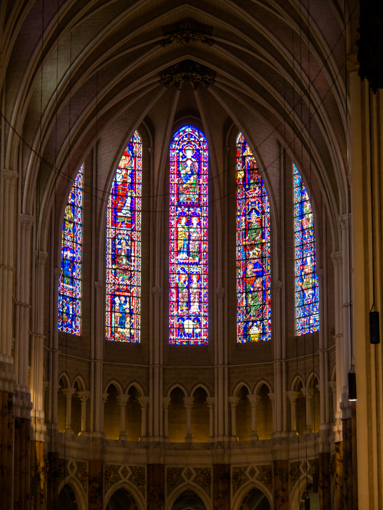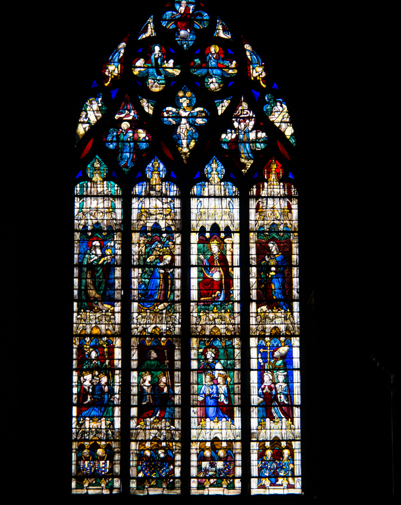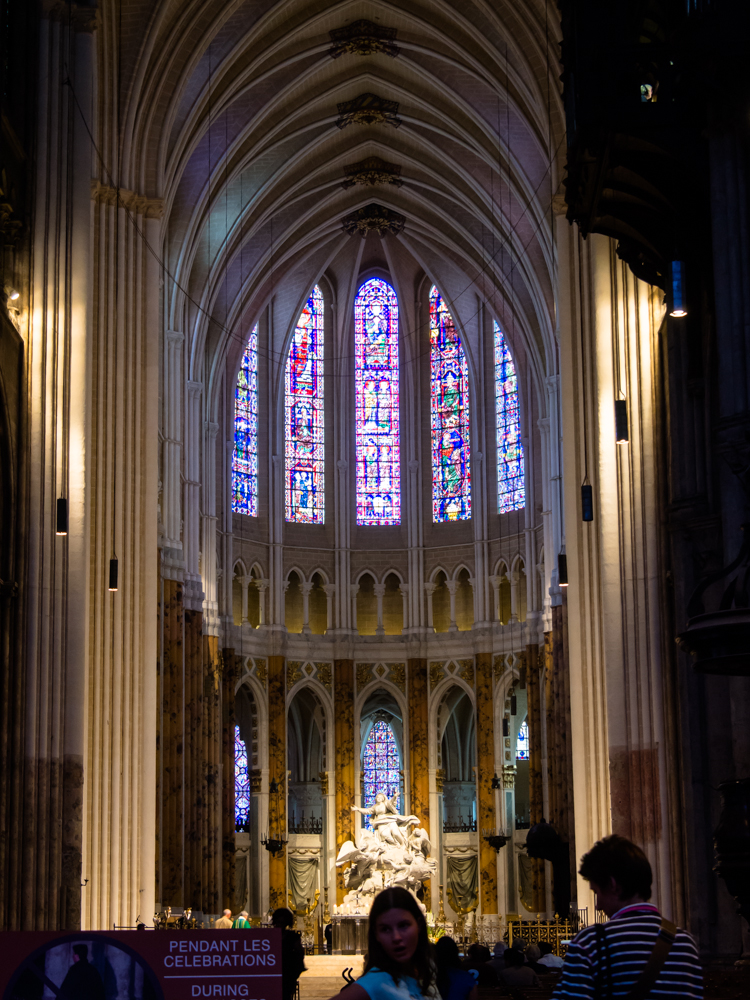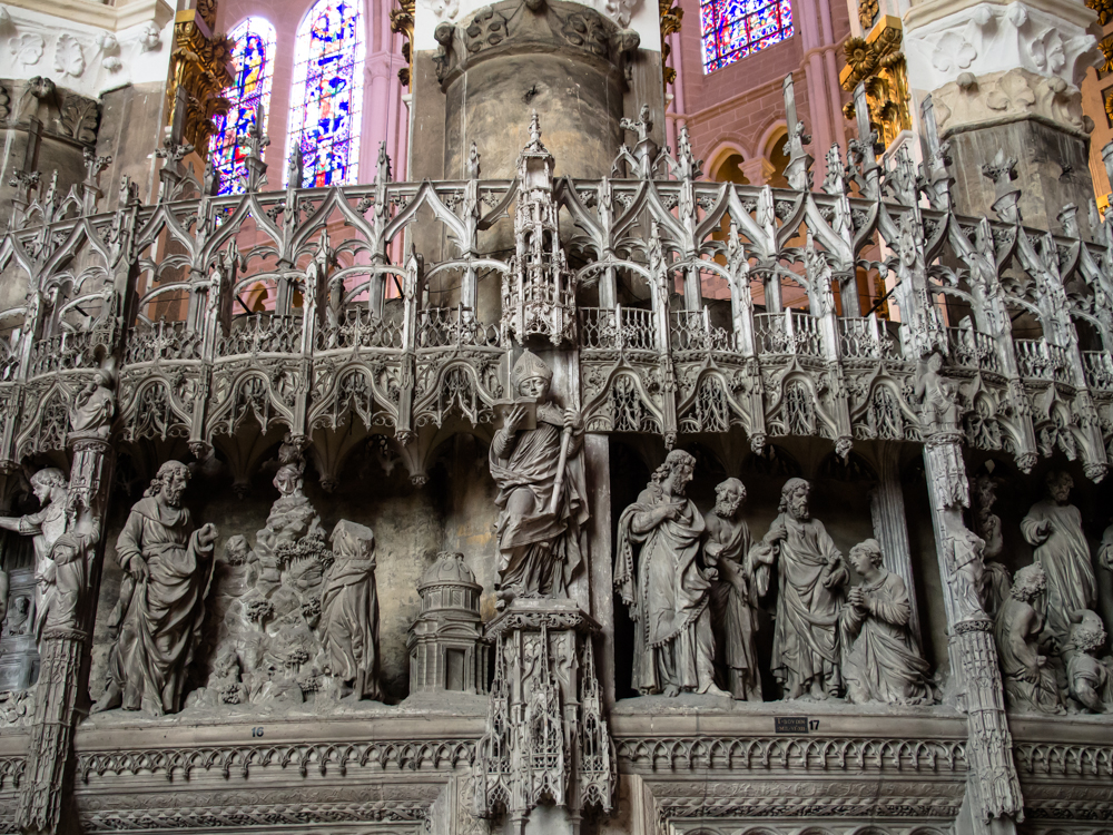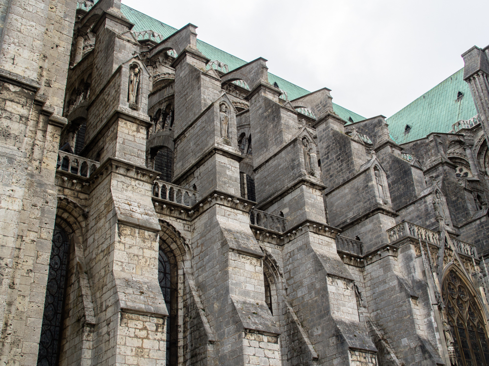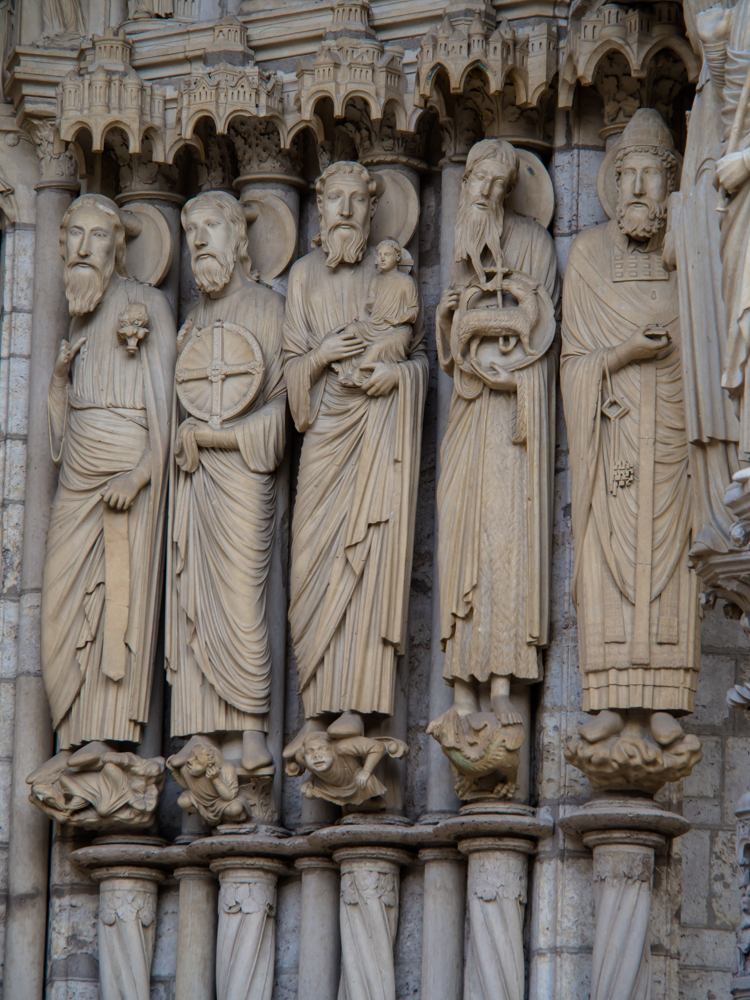 The entire structure at Chartres is very well preserved. The stained glass is exceptional, however, with most of the glass being unmodified since its installation in the early 13th century. The stained glass was intended as messaging for the masses. Since they were generally illiterate, these were iconographic. They are read left to right from bottom to top and usually depict a message from the bible typically ending with Jesus at the top or it is a depiction of local life.