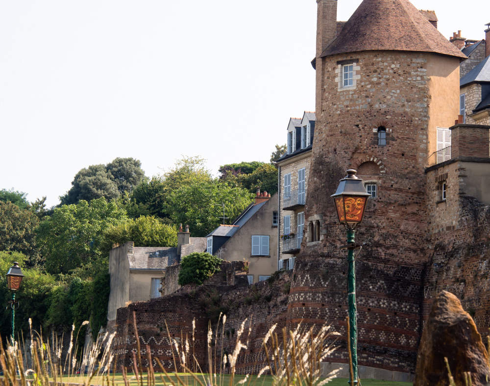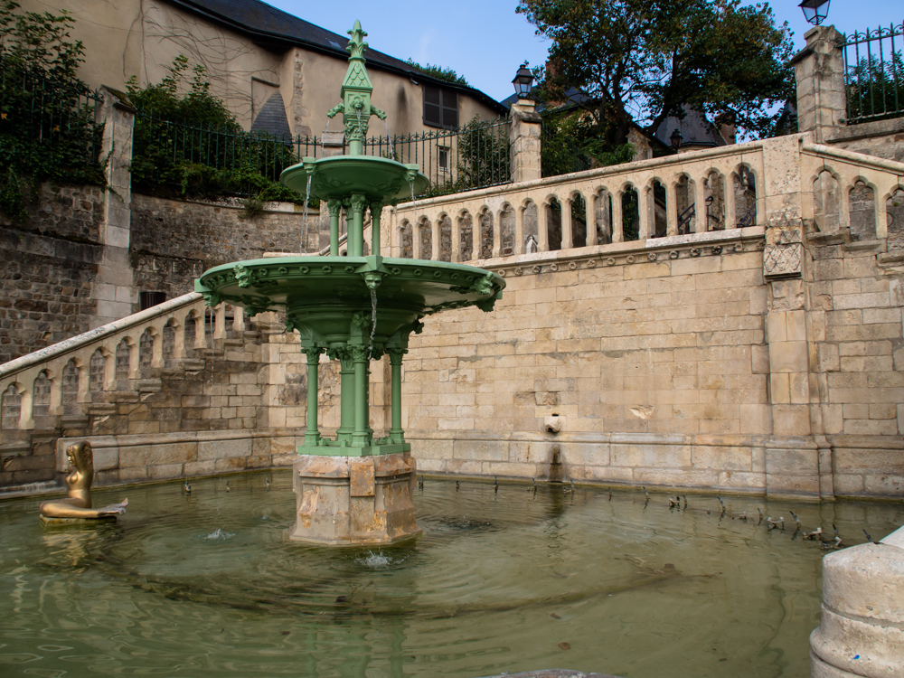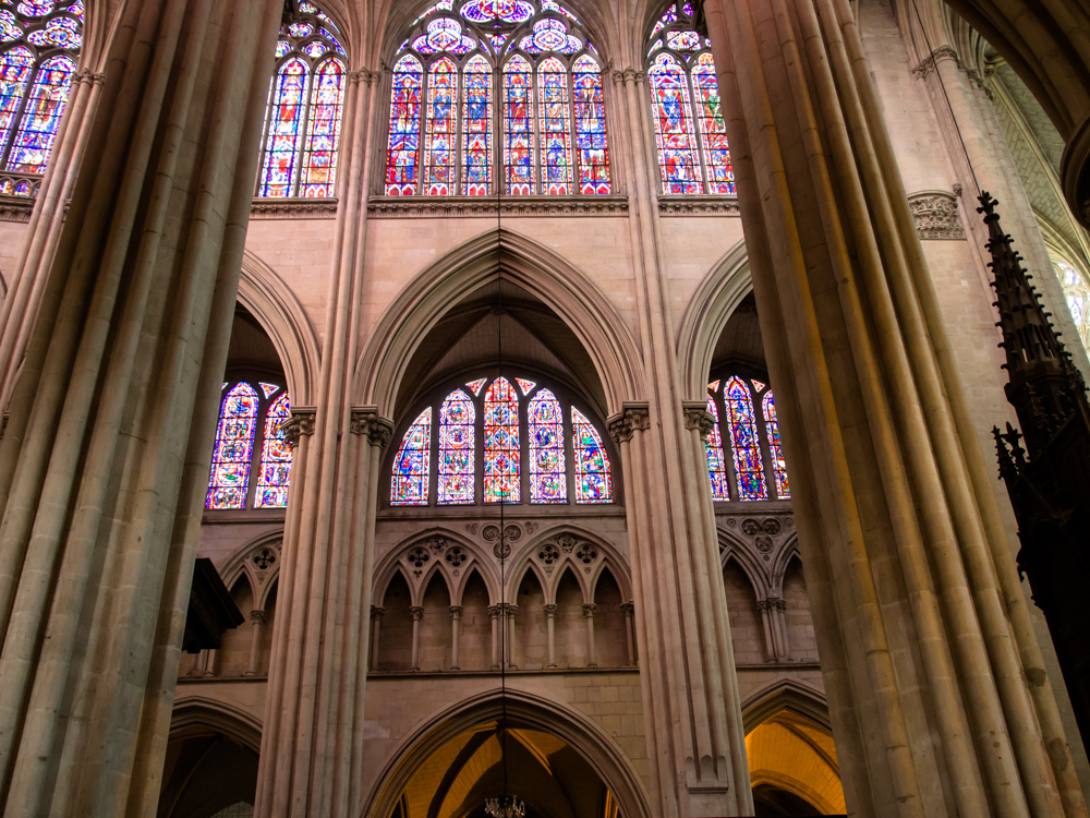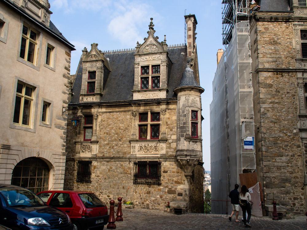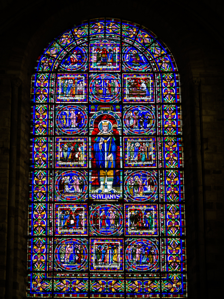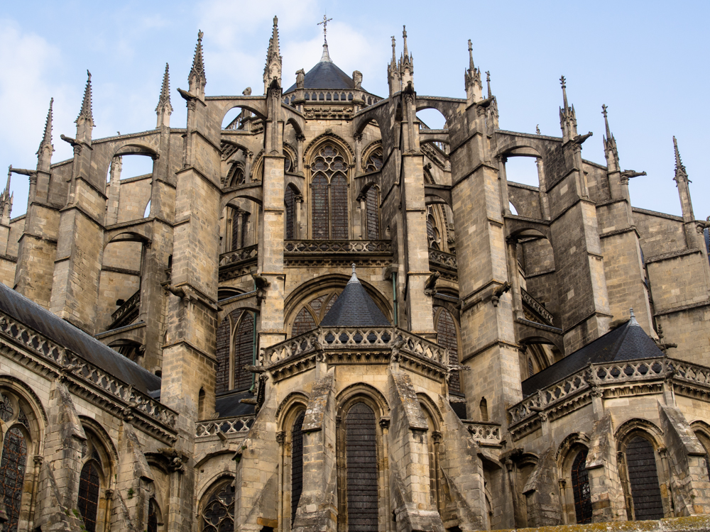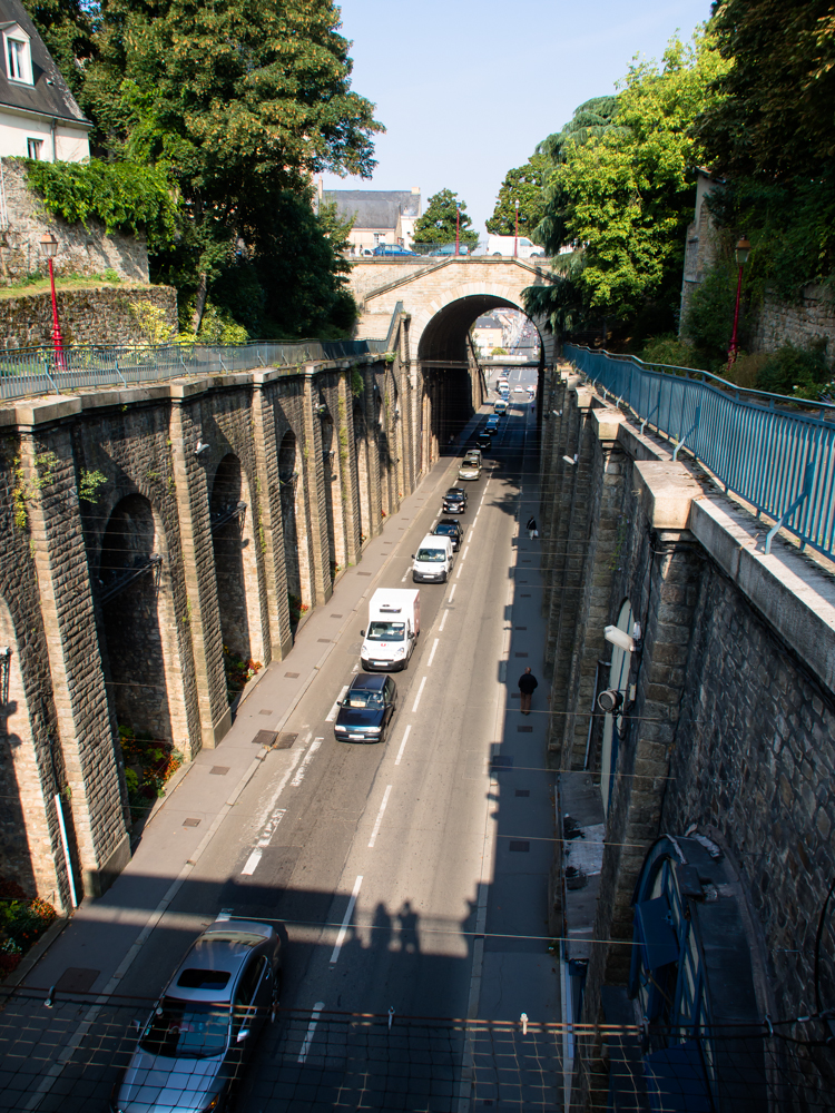 There is a viaduct through the hill that has the cathedral. The road is cut deep into the hill with cut stone sides.