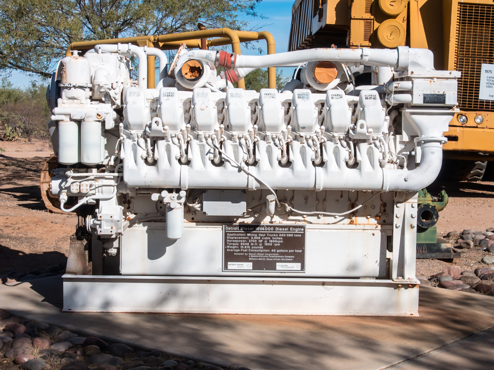 cubic inch, 2700 hp diesel motor that puts out 8000 ft-lbs of torque and weighs 15,000 pounds.