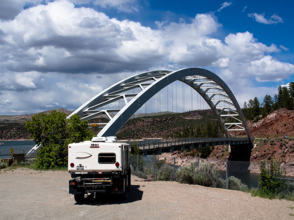 Flaming Gorge Reservoir is an interesting bridge that crosses