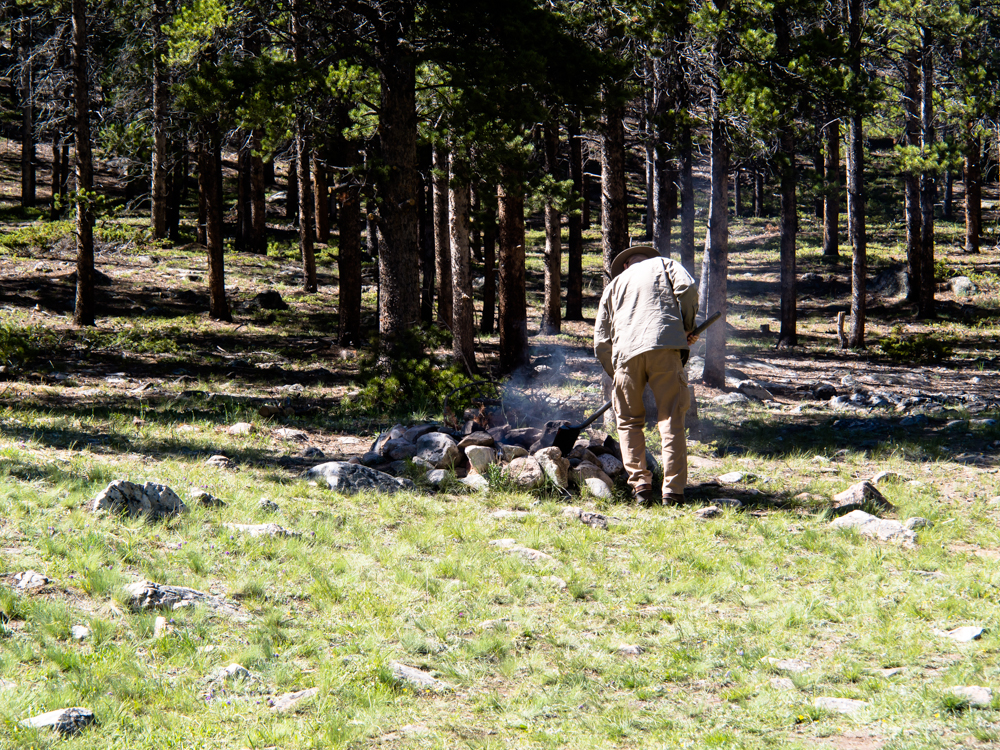 En-route to our remote camp, we came upon a camp fire that someone had left unattended, So, we put it out. It is not good form to depart a camp with a fire still burning.