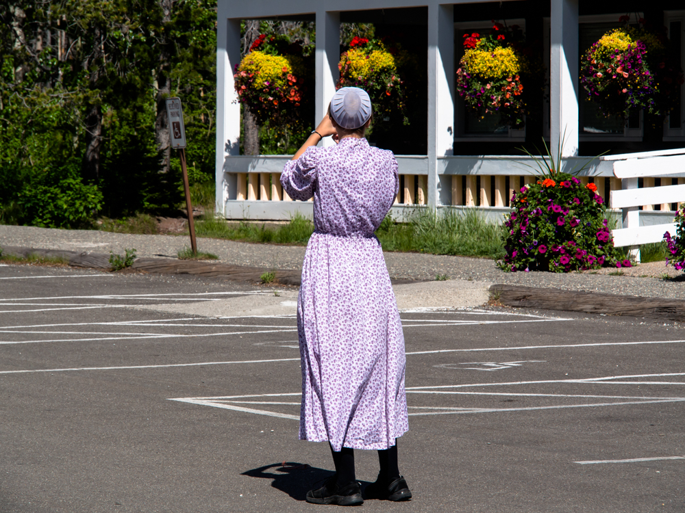 Amish gal taking photos. Despite the frumpy dress, she