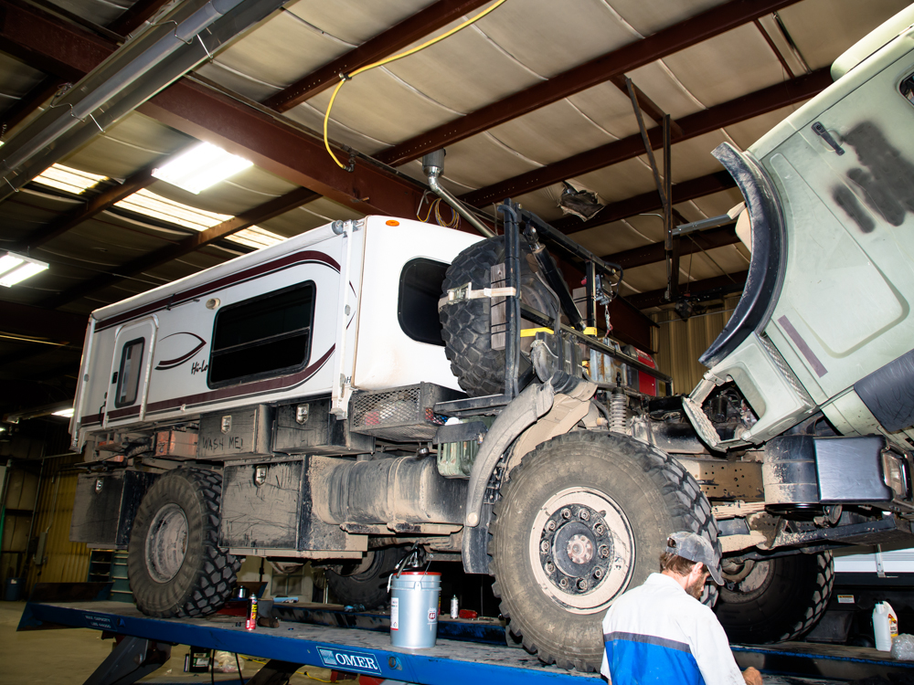 There were a host of maintenance actions pending on Thor. In general, the truck has been quite reliable, but it is a 1988 model. While it has not had many miles (indeed the odometer was 30,000 km when I bought it in 2010 and only 81K now) what happens with older trucks is that everything rubber has issues. Rubber in this case means tires, hoses, belts and seals. The tires are new, installed just before this trip. Belts were recently replaced. But, seals are an issue. We had previously experienced some issues with the clutch in 2011 and 2012. Rebuild kits were installed in the master cylinder. But, the issues went away and then came back. So, in anticipation of this maintenance cycle, I purchased replacements for master cylinder, slave cylinder and flex hose. Additionally, I purchased a rebuild kit for the brake master cylinder and replacements for each of the wheel cylinders as well as new flex lines for the front and rear. Generally stated, all the critical rubber parts were going to be replaced irrespective of whether they were CURRENTLY producing issues. In addition, all of the "normal" maintenance actions like oil change, fuel filter change, gear oil changes and adjustments were planned. Finally, our air conditioning compressor had failed shortly after it was installed in 2012 so it was to be addressed as well.