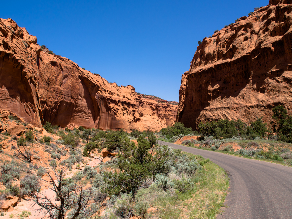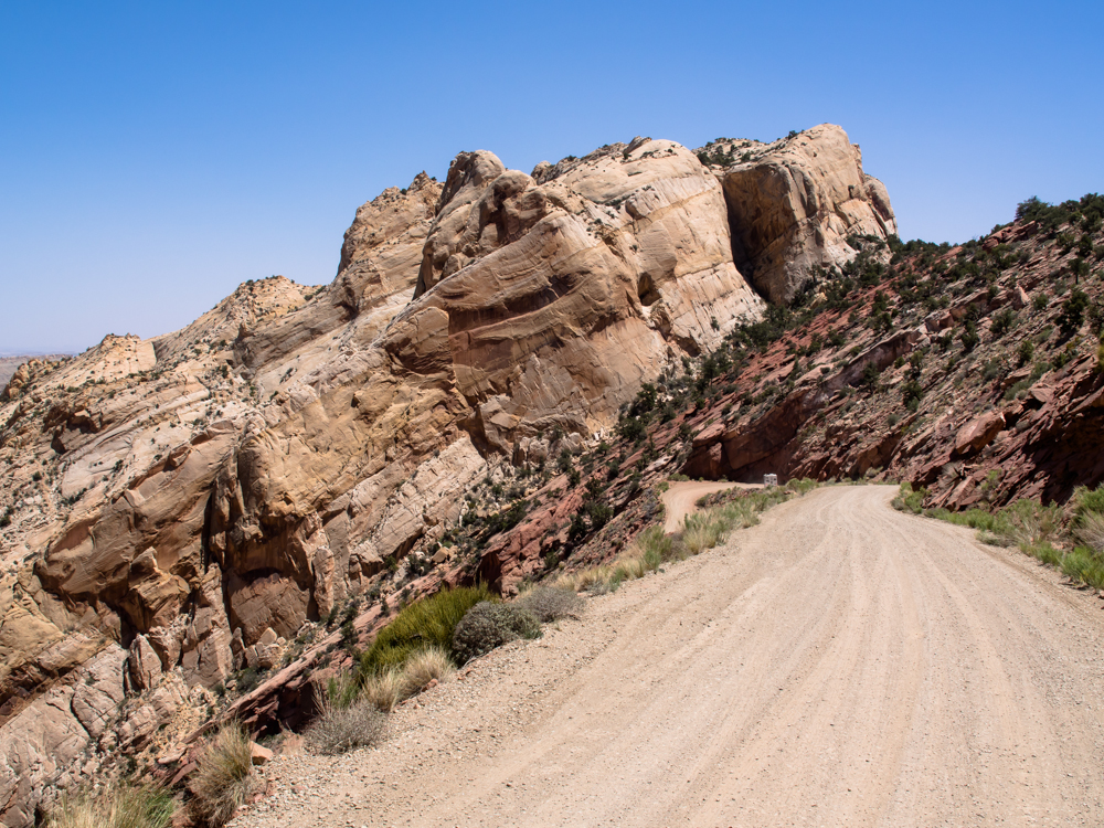 the face of the monocline. The grade of the road is about as steep as the angle of the