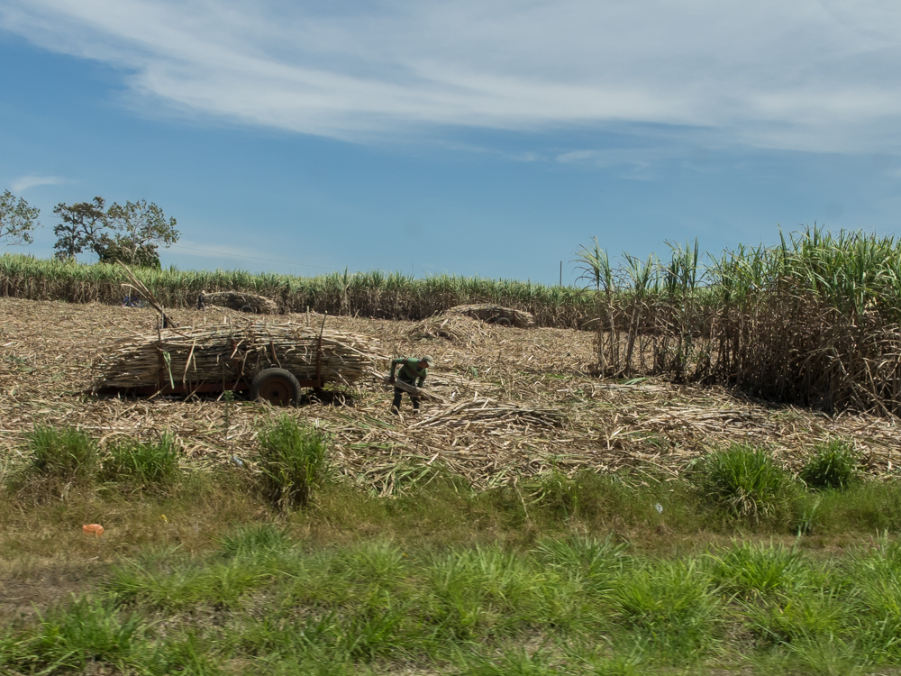 is manually harvesting sugar cane. Happily for him, it was