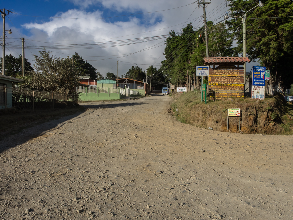 Monteverde. Oddly, after all that dirt, we hit a paved