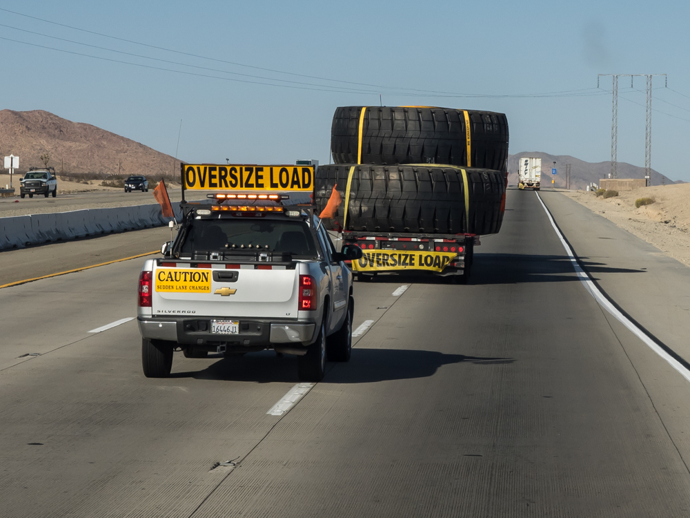 this trip, we were passed by a trailer carrying huge mining