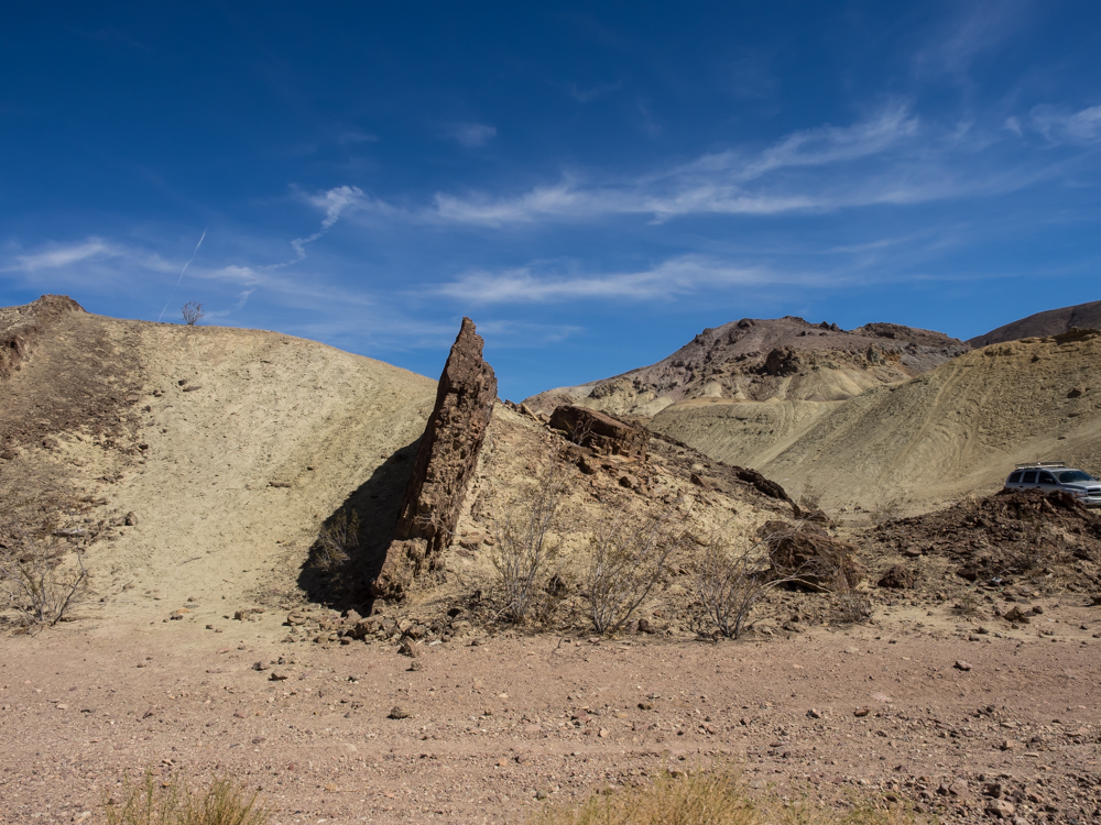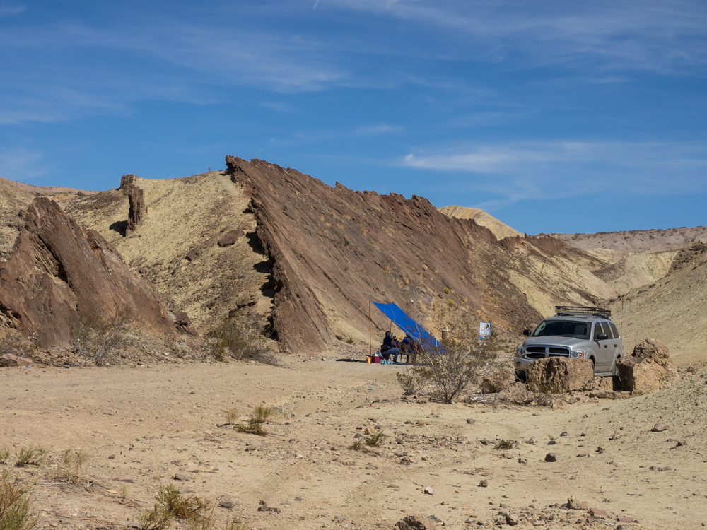 shooting next to a tilted dike of intrusive lava.