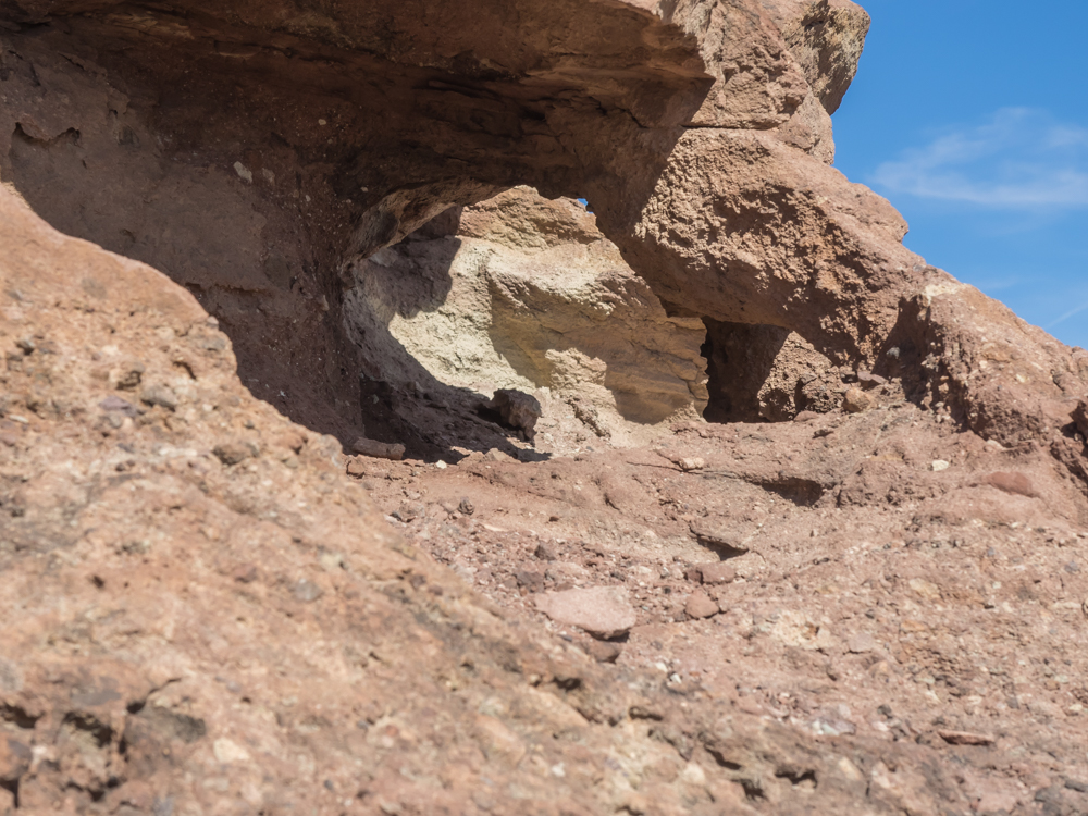 wears holes in the soft rock formations. Note the