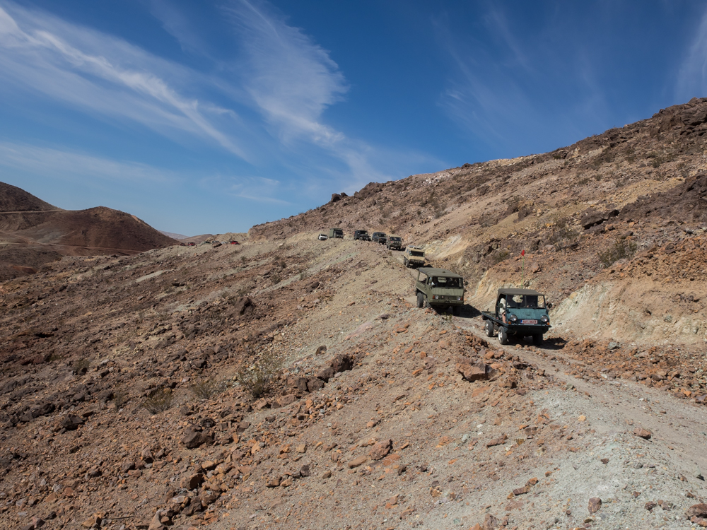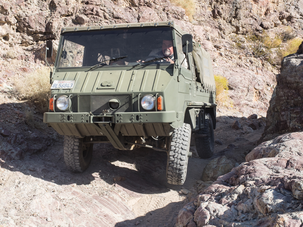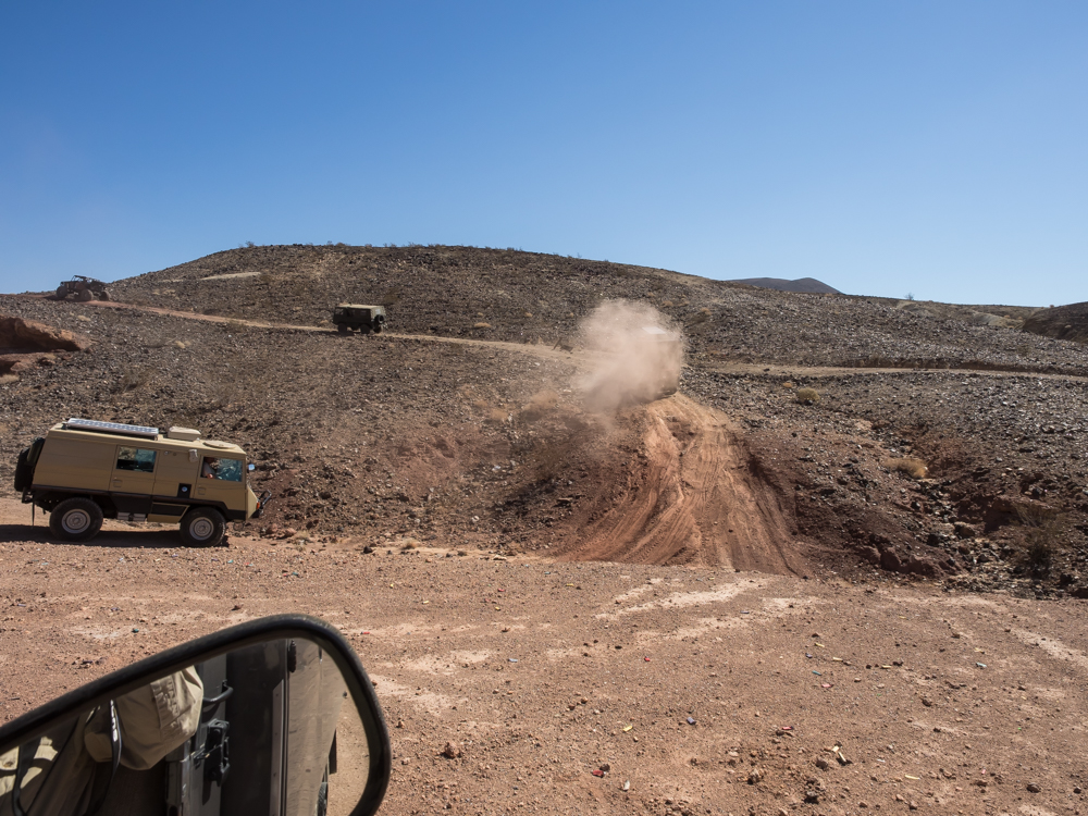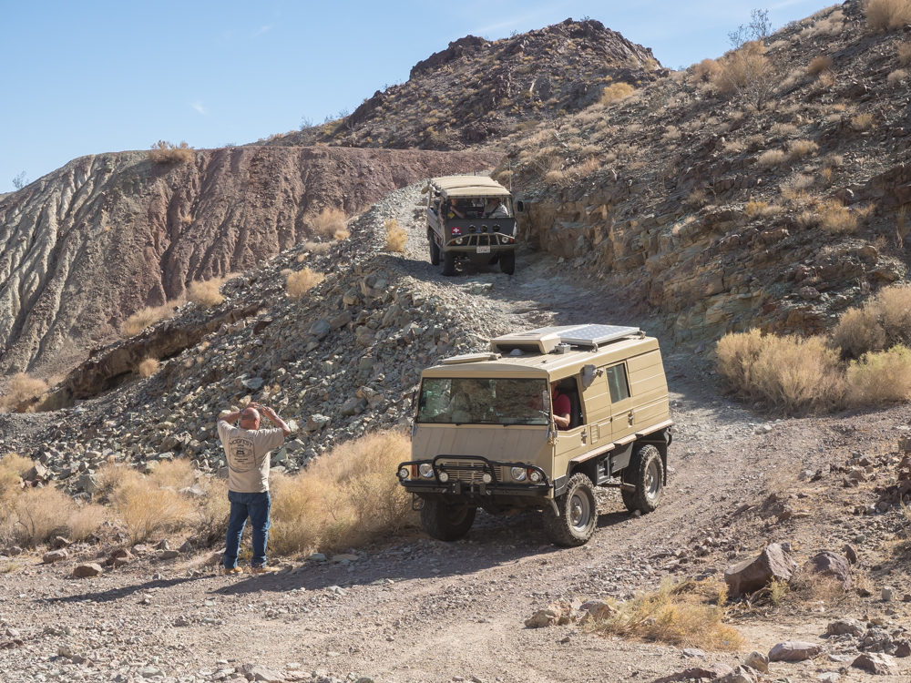 steep section of the dirt trail was causing some of the Pinzgauers