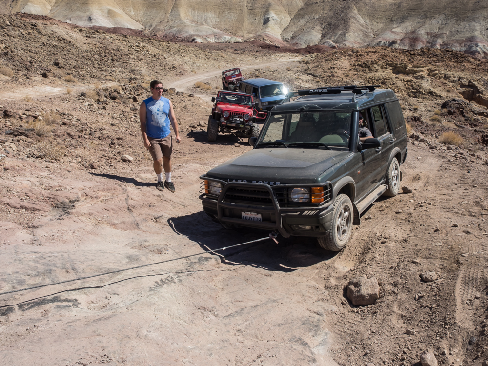 of the jeeps winched the Rover up the slab past the loose dirt.