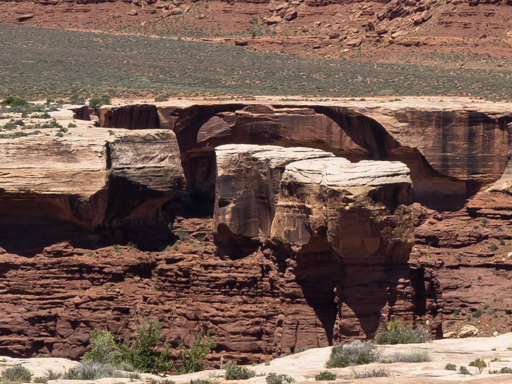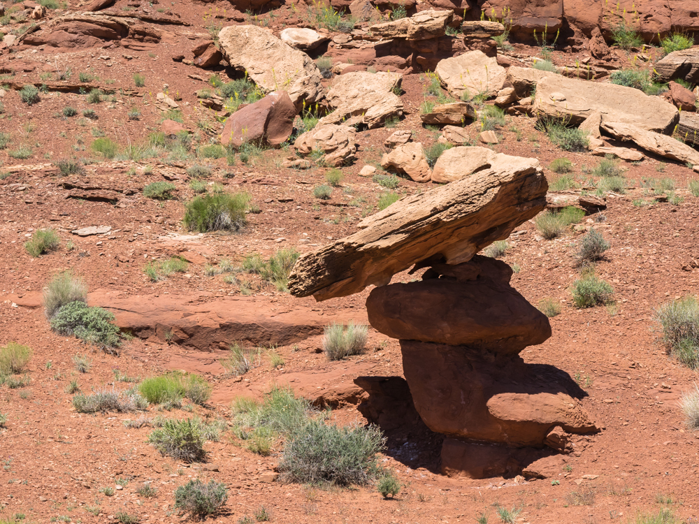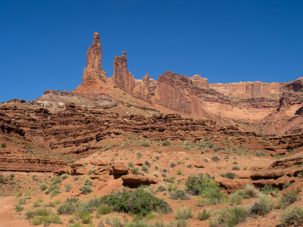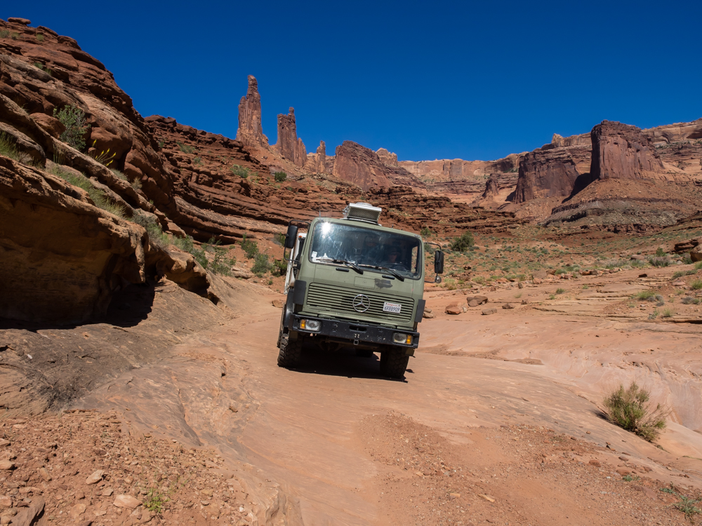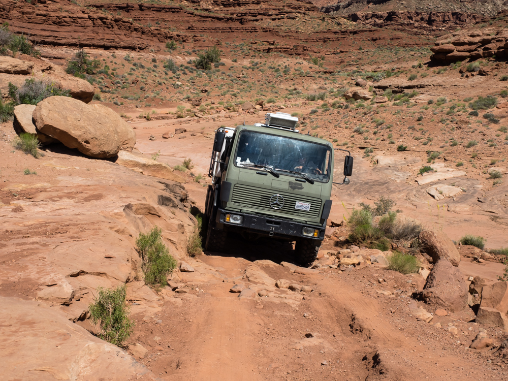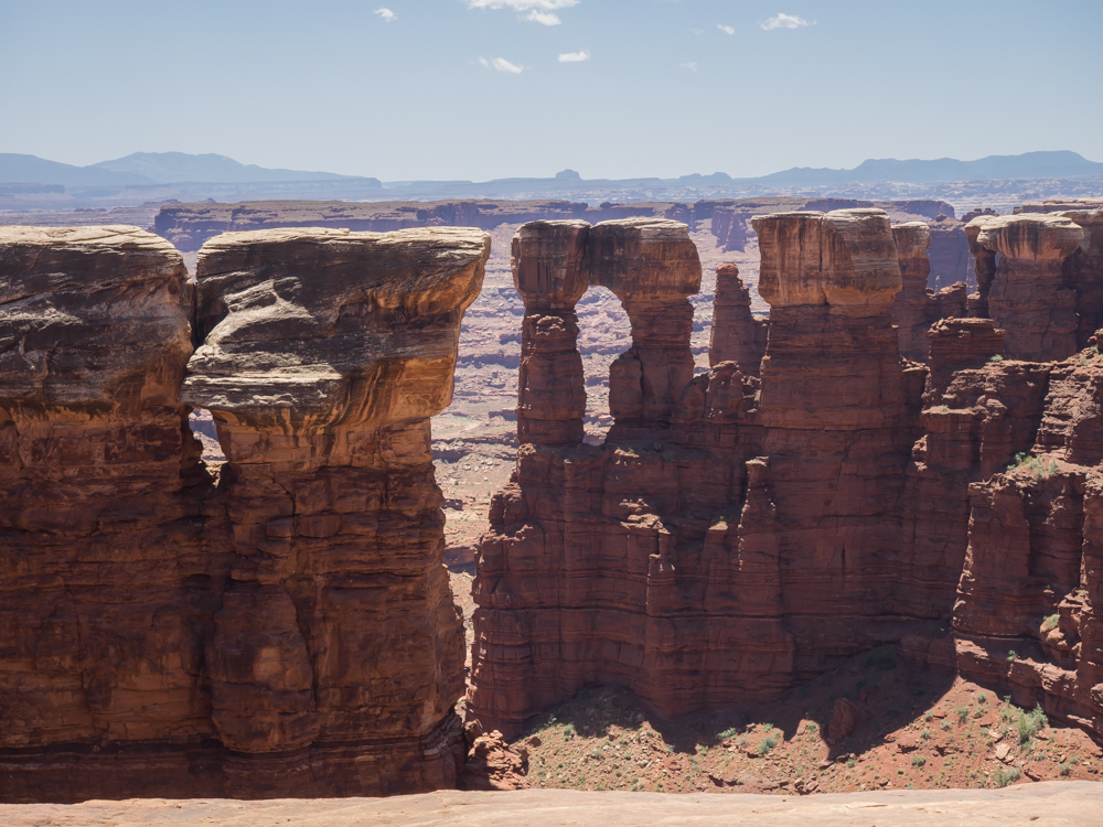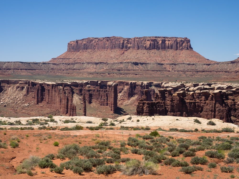 of slickrock and sand. Above, the rim of Canyonlands can be