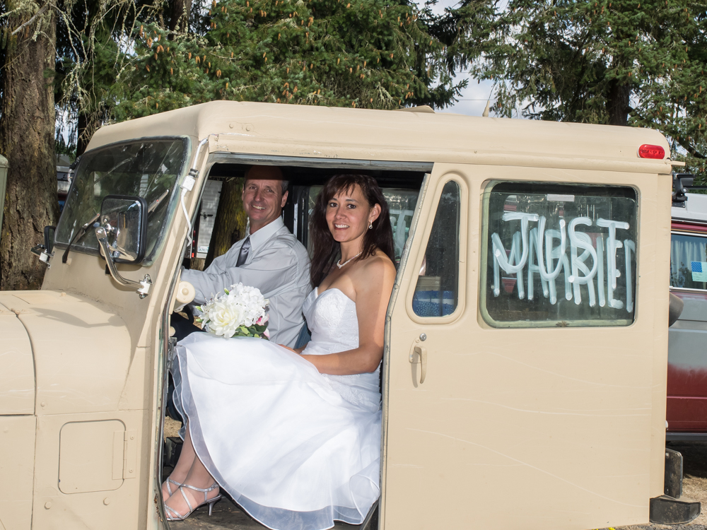 jeep. I hope that she did not get her dress soiled.