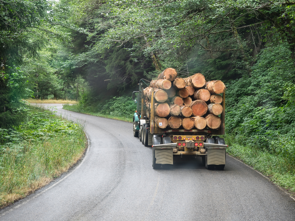 upon a log truck carrying payload to the sawmill.