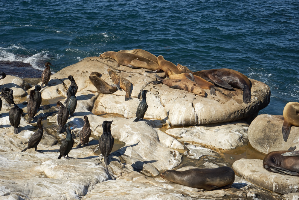 seals were seemingly oblivious to the cormorants and generally