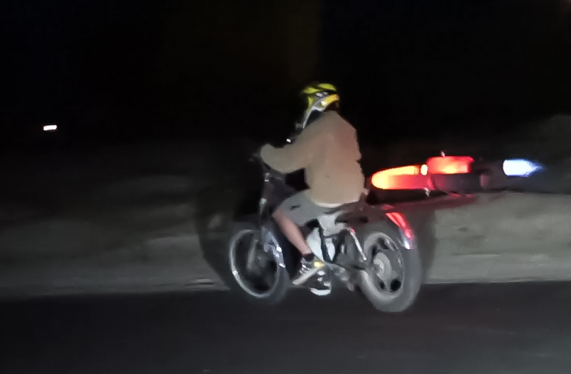 Above, the bike returns after a run and is preparing to shut down the engine.  Note the infrared illumination on the ground due to the intense heat of the engine.