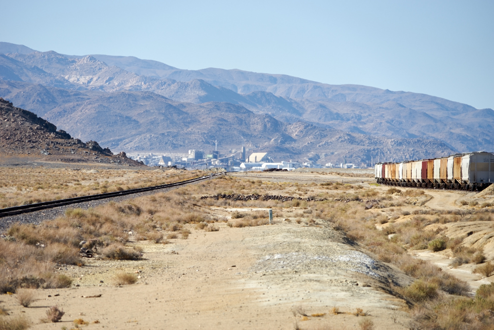 the Trona Railroad line to Trona with chemical plans nestled