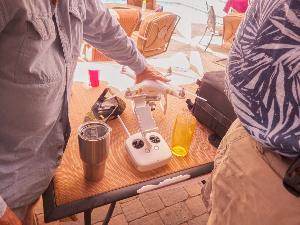 drone and flew it over the party house.