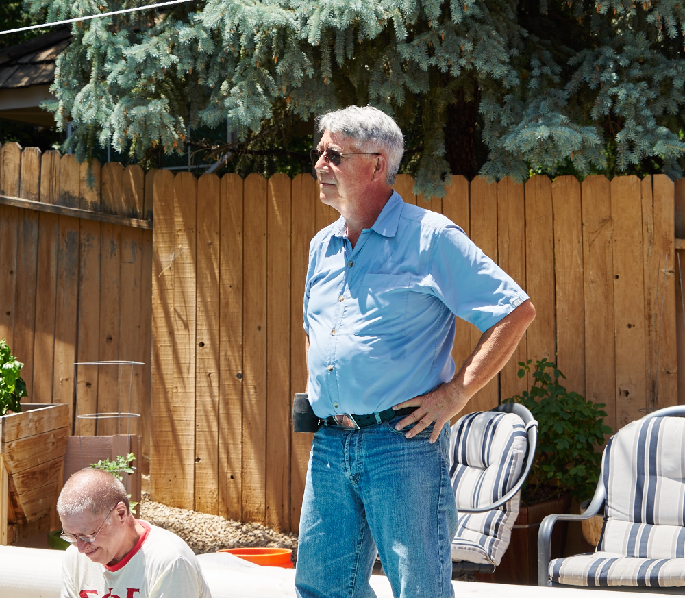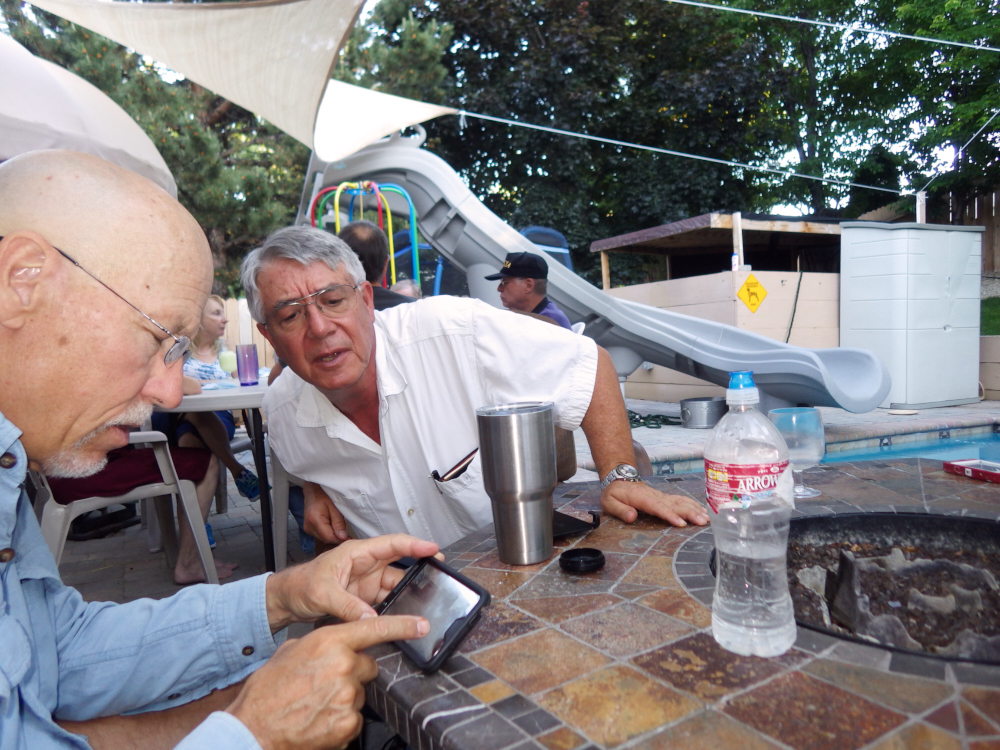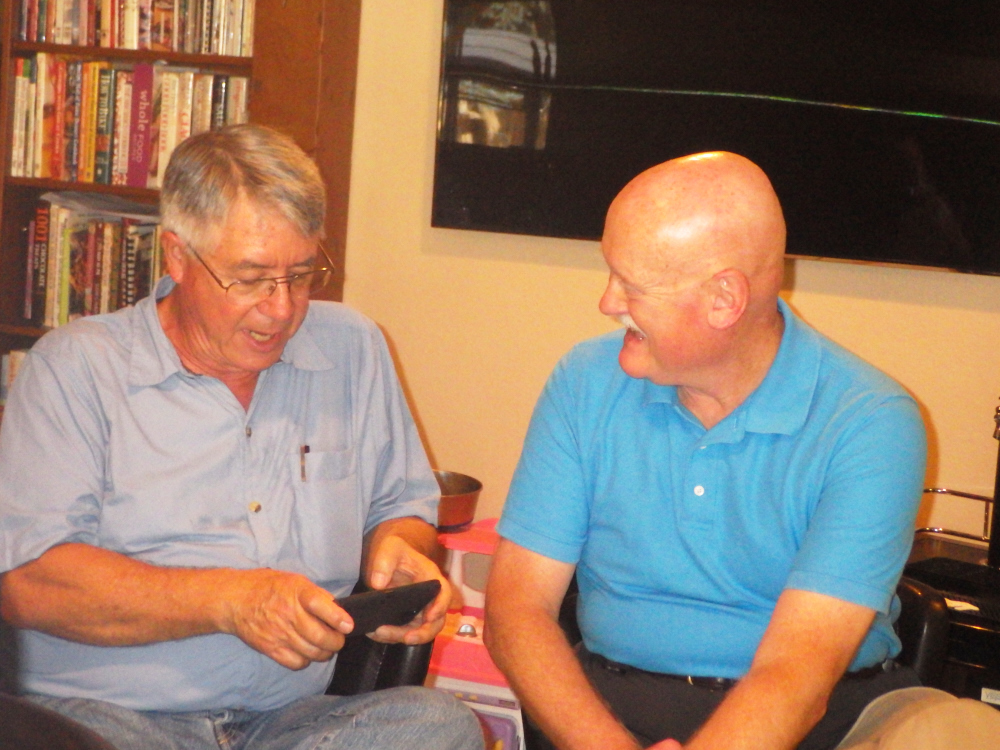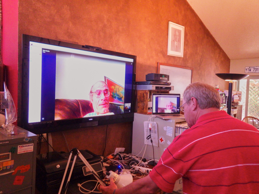 Paul and Jim watch a Skype session with a brother that could not