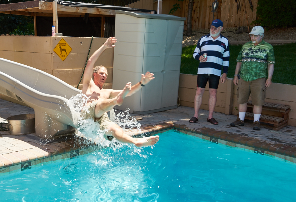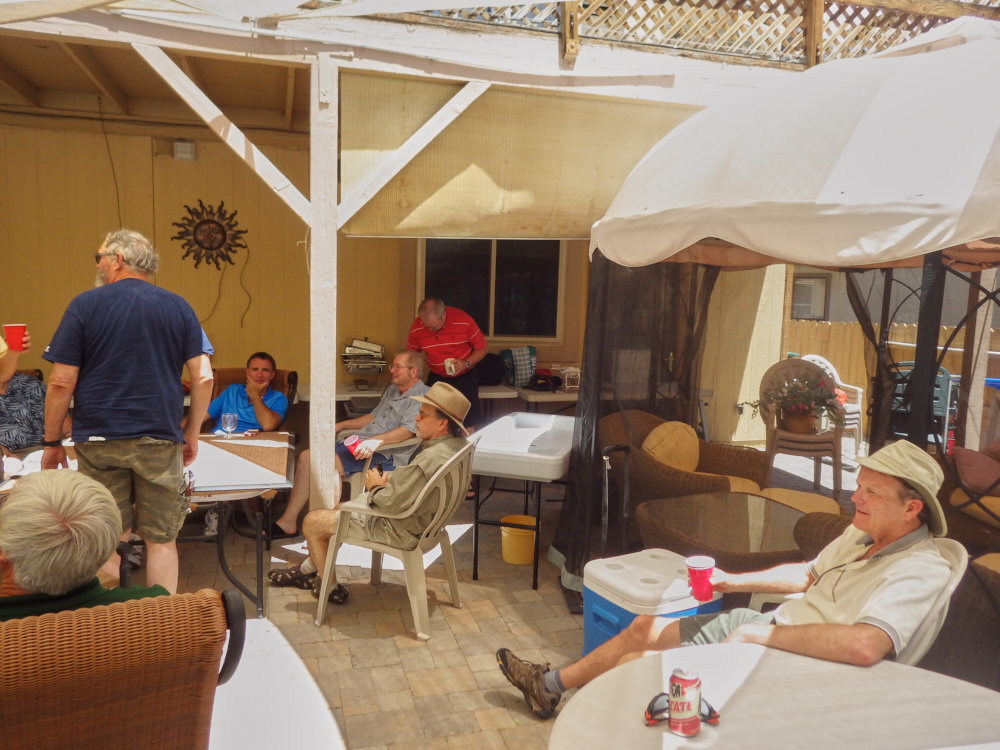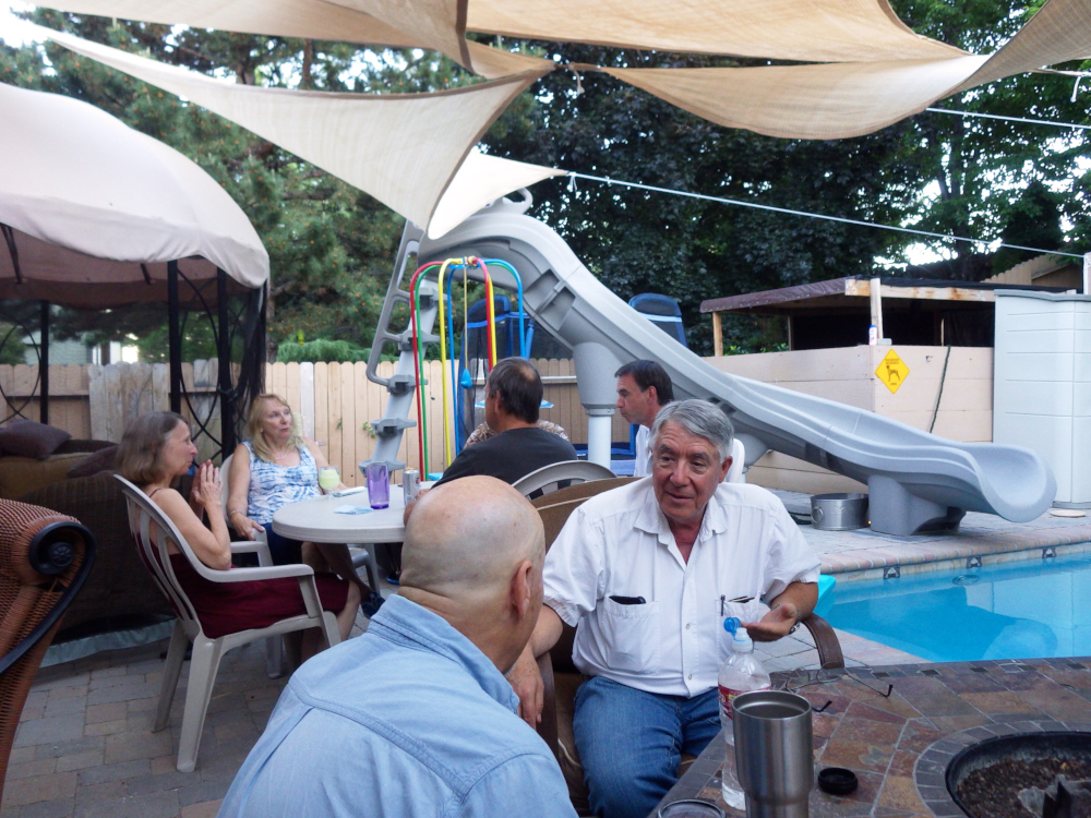 relaxes around the pool before our chapter meeting.