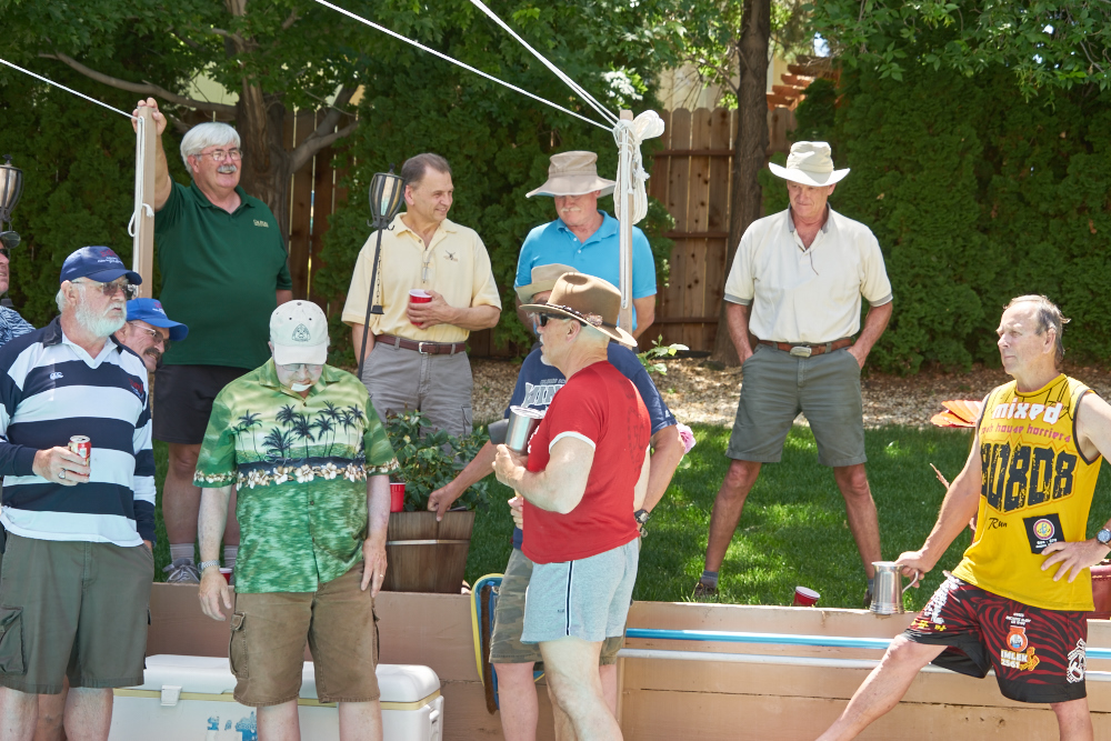 Duncan Lestina (with red cup), Steve Phiper, Bill Caid (red
