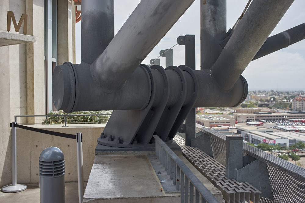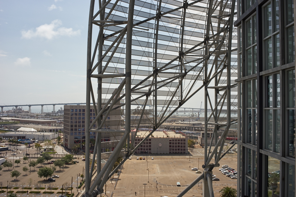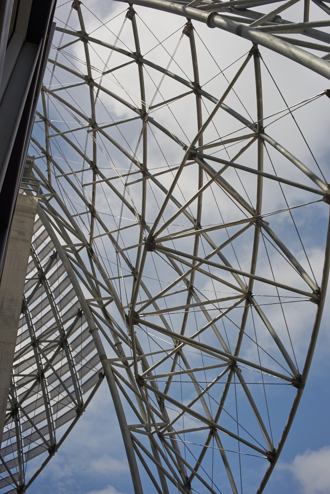 underside of the framework as seen from a 9th story balcony.