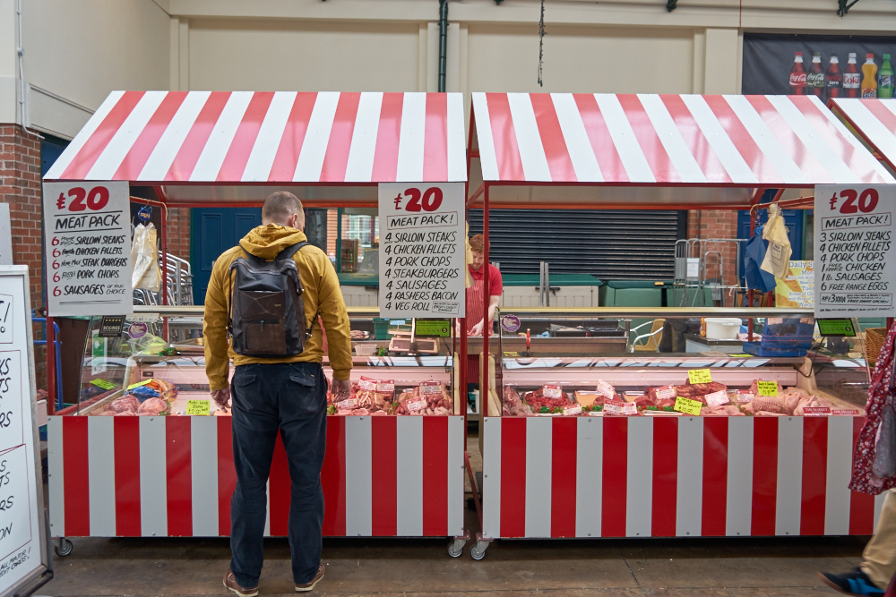 the meat vendor the once-over and if I had a cooking method, I