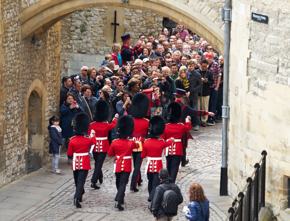 Yeoman Warders, also known as "Beefeaters" (like the gin), are