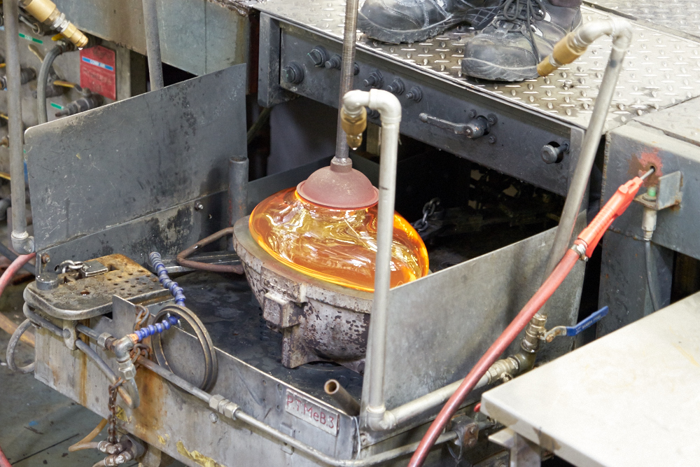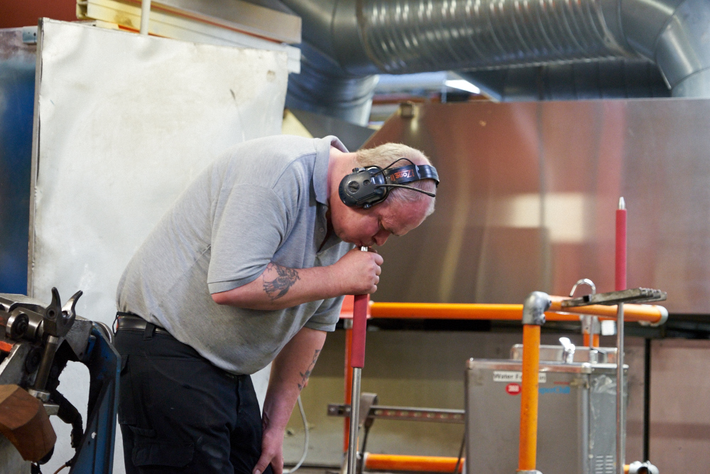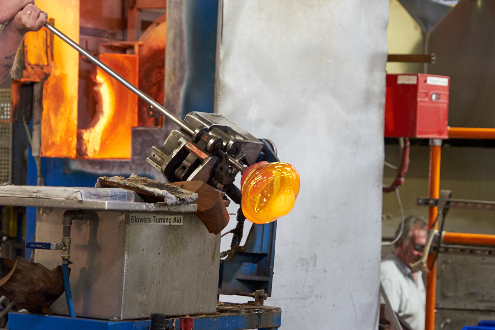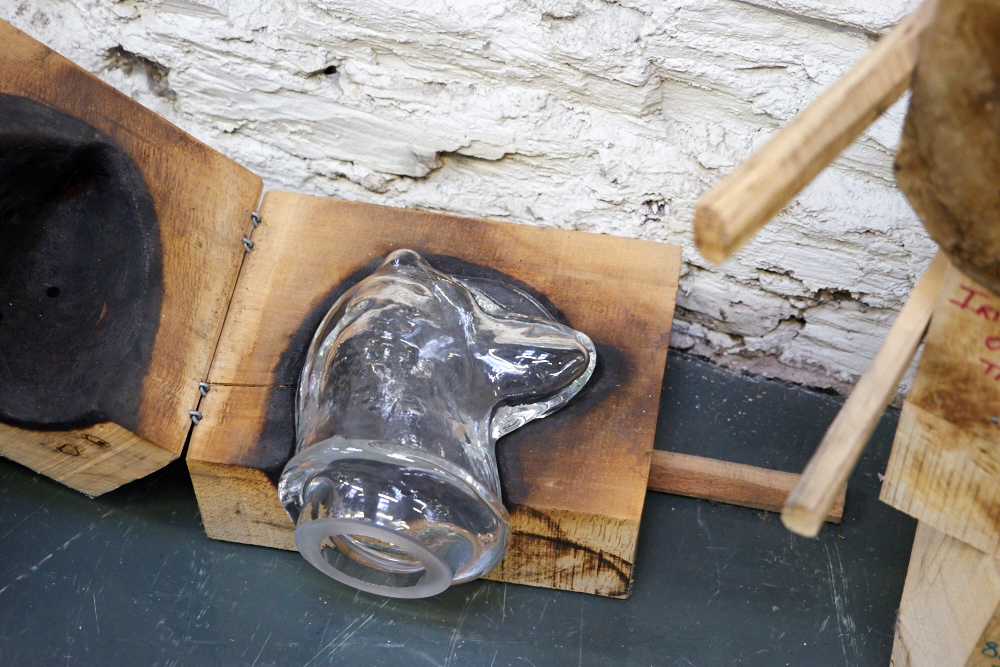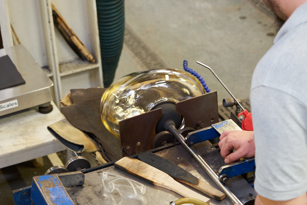 glass is spun on the pipe and shaped with a heat-proof pad while