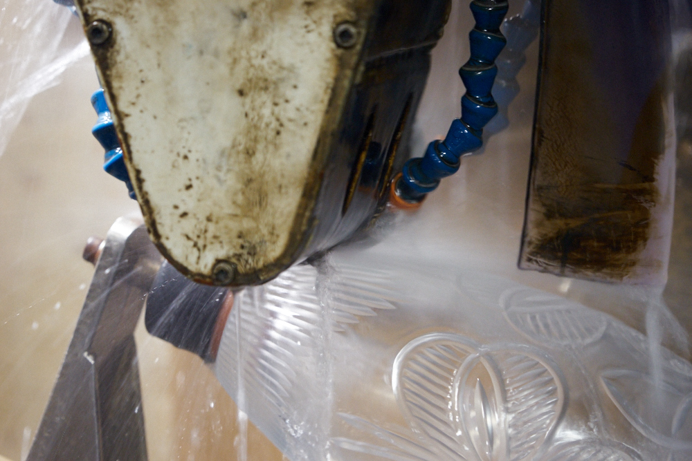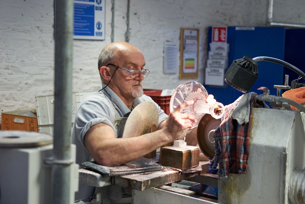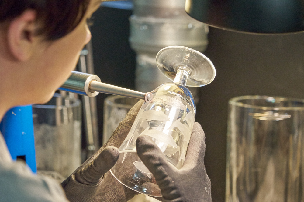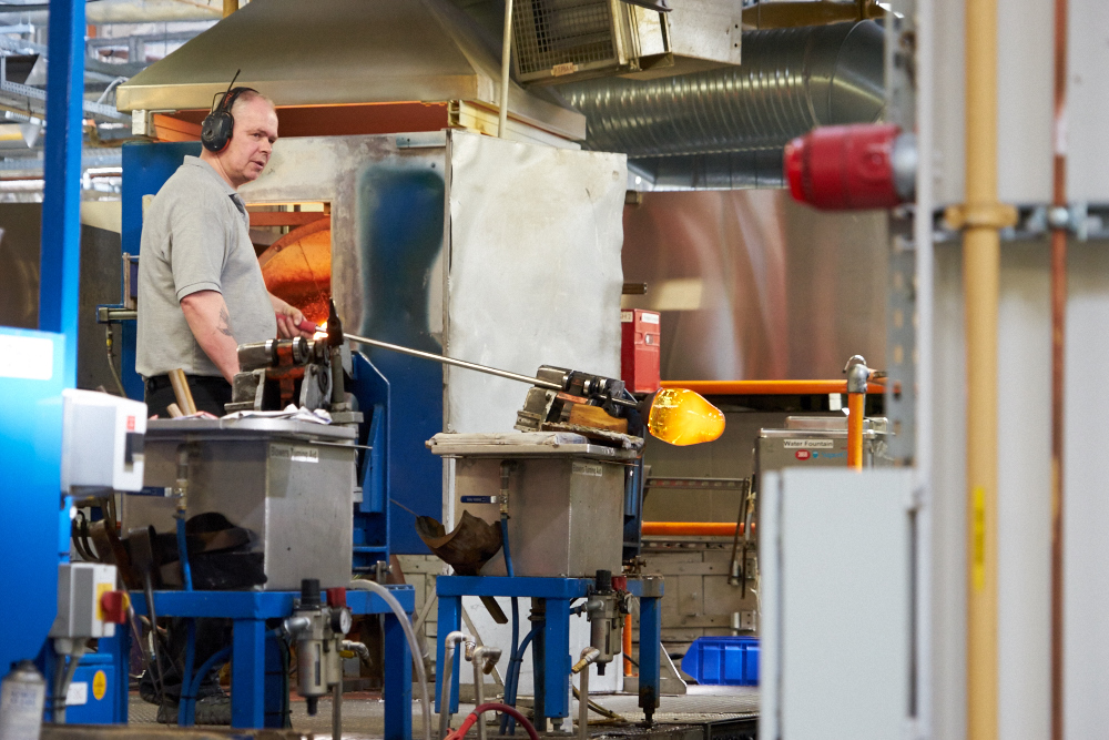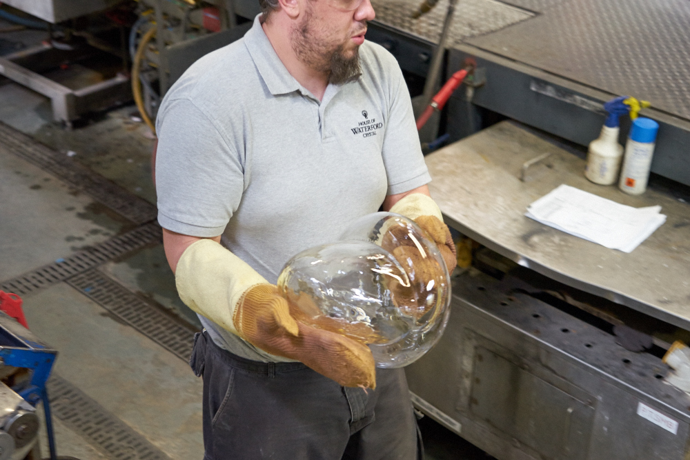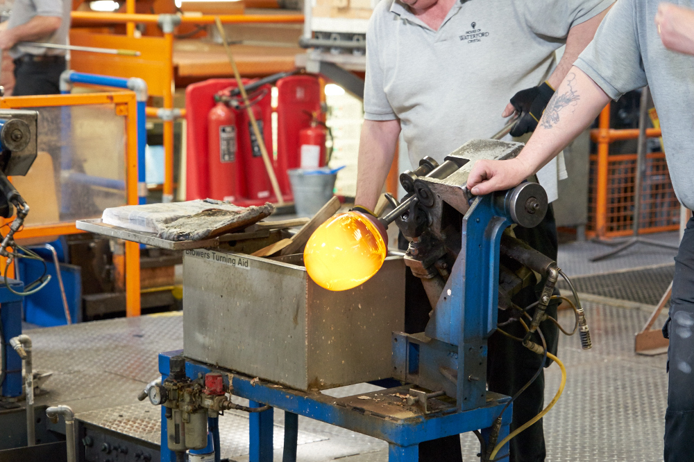 glass is spun on the pipe and shaped with a heat-proof pad while