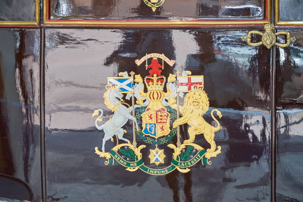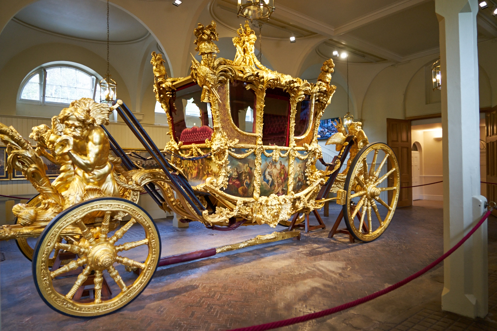 gold-leaf encrusted carriage weighs 8,000 pounds and is drawn by