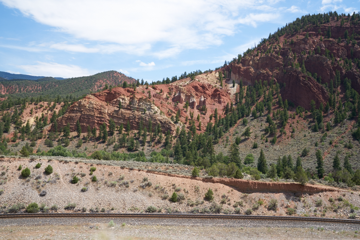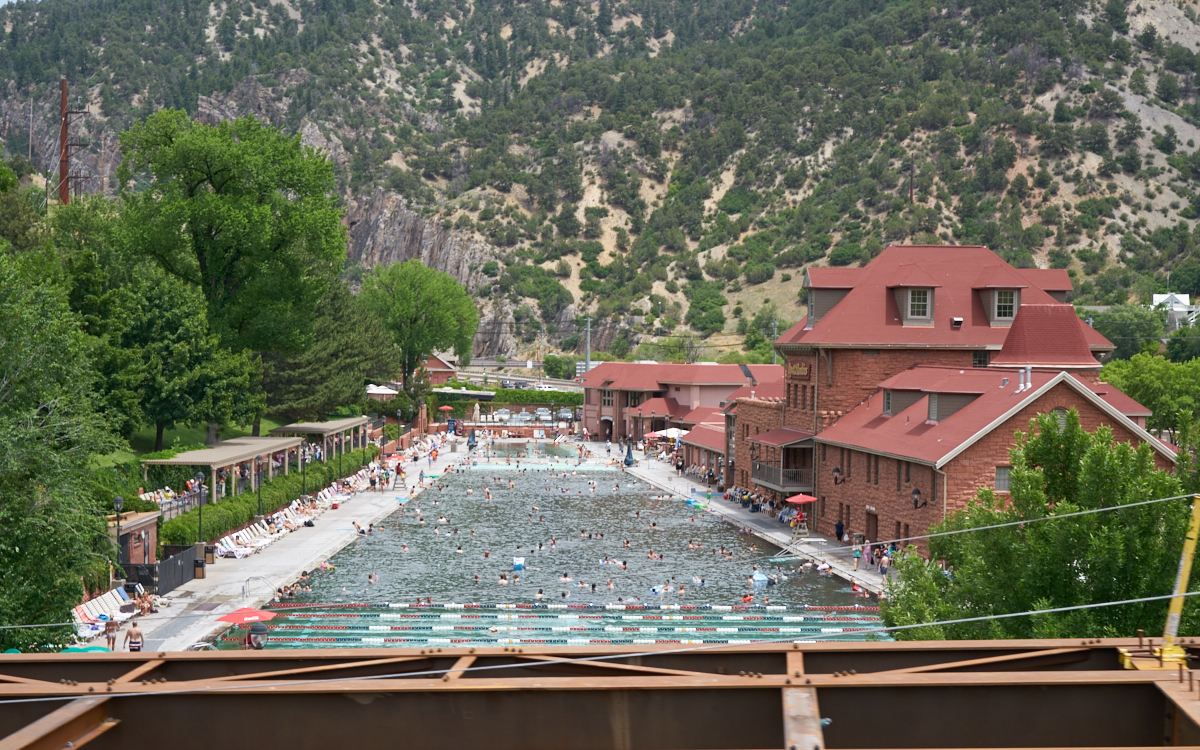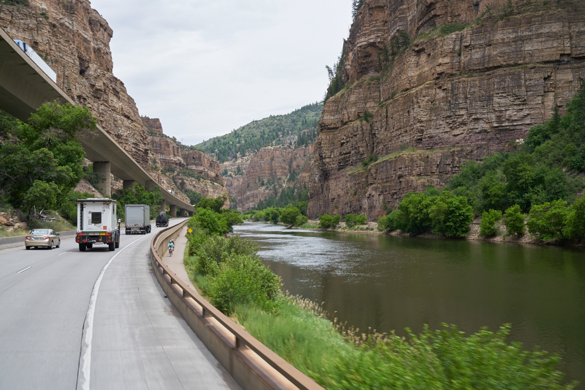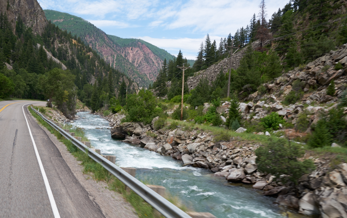 travels along the Colorado River in Glenwood Canyon. This