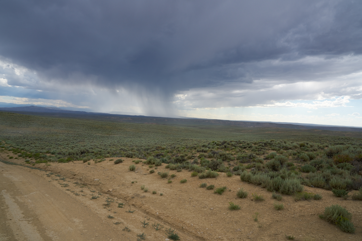 photo above, you can see rain tendrils on the far mesa after the