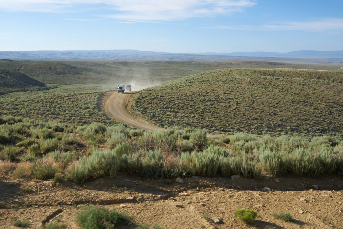 the road produced huge clouds of dust as the trucks rolled over