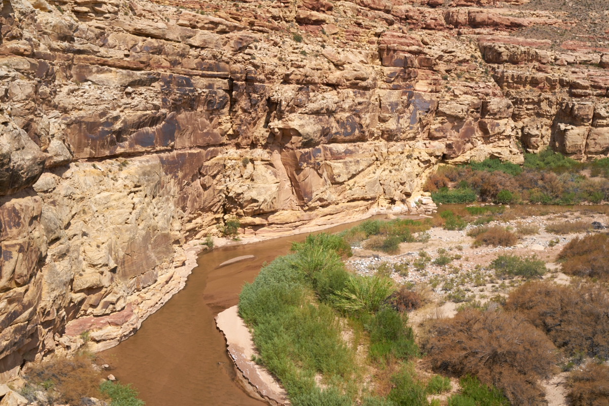 small Virgin river has carved a huge canyon through the