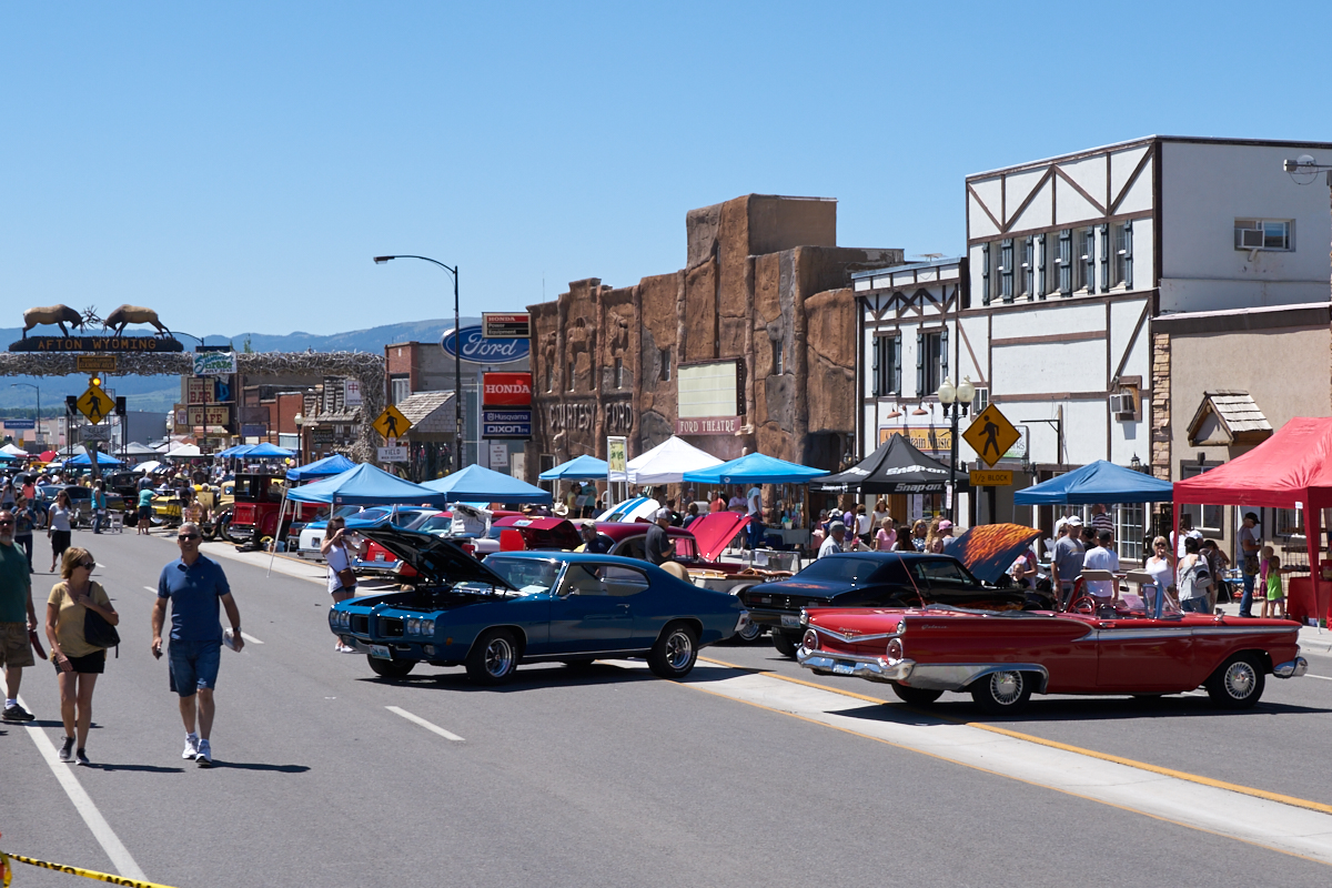 street in Afton was blocked off and there were antique cars