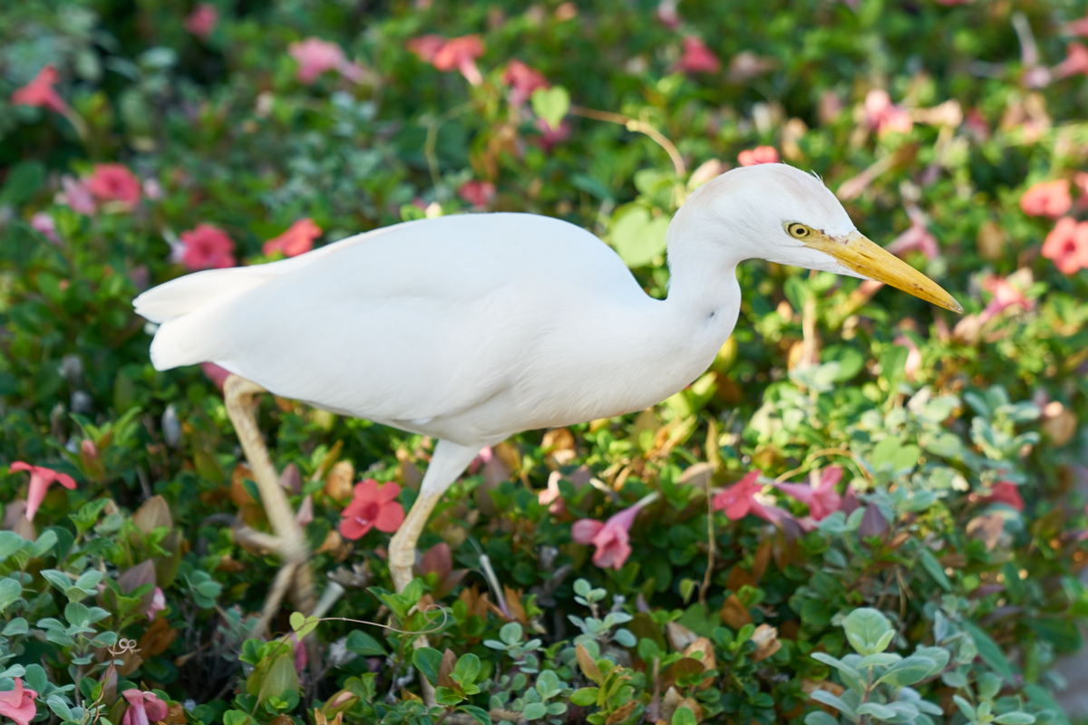 Near the pool at the Westin I spotted this egret(?) working the bushes for breakfast.