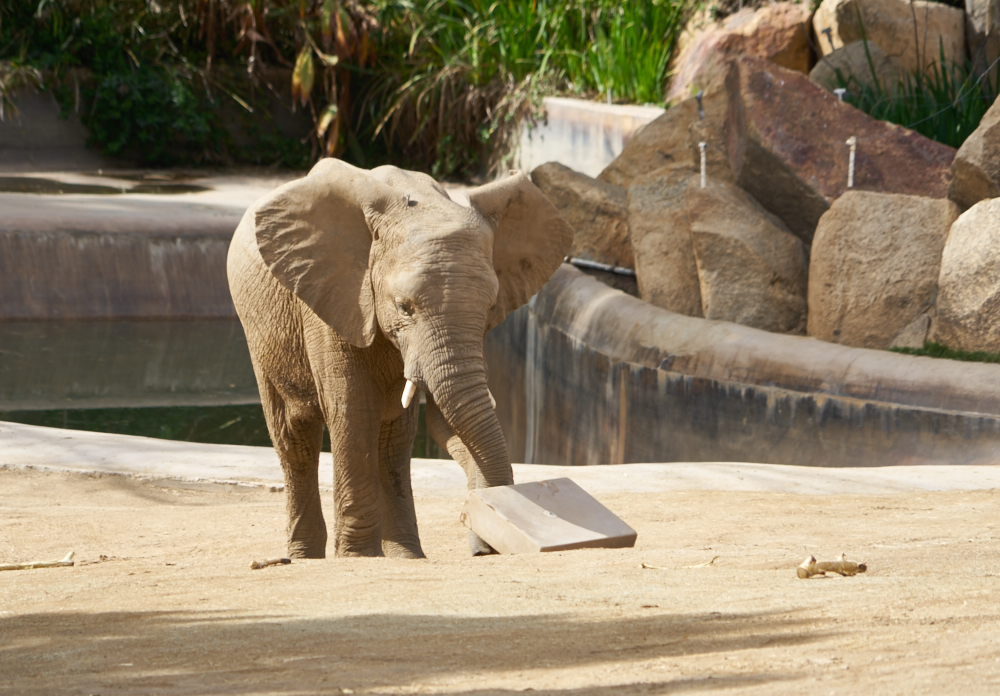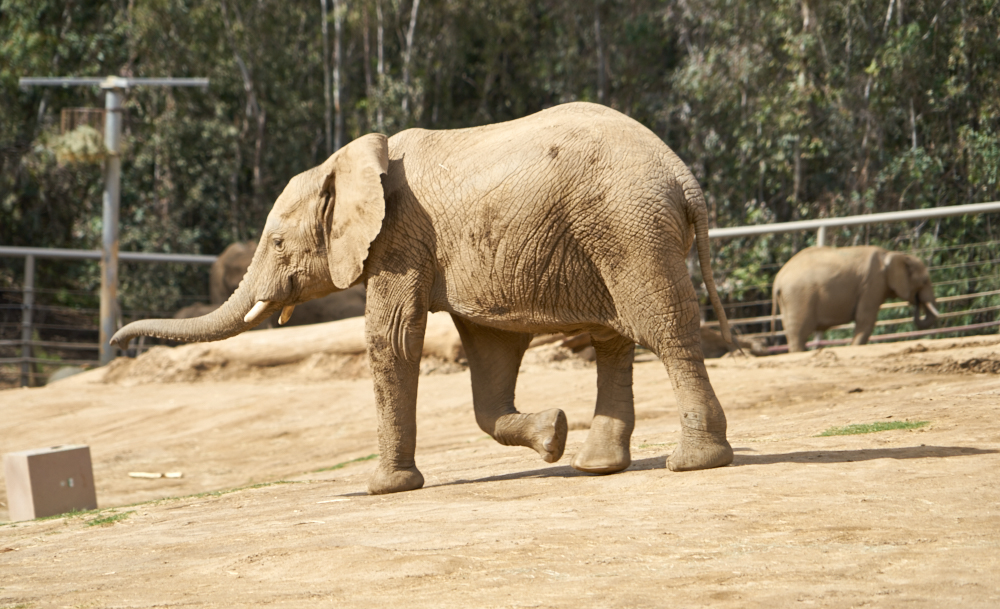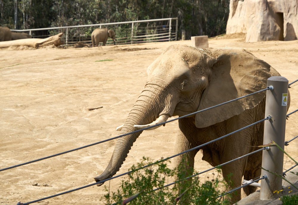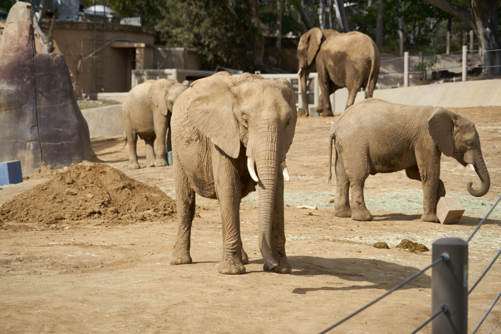 elephant enclosure and there were 8 or so pachyderms running