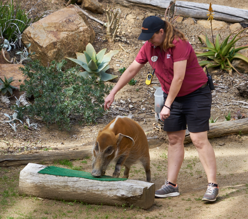 The pig does tricks
