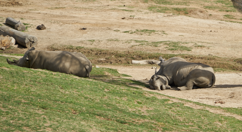 rhinos were on lunch break. Note the baby at right-center