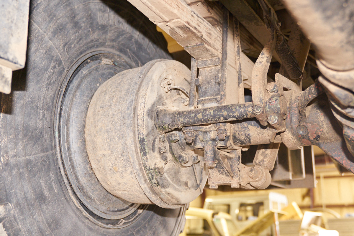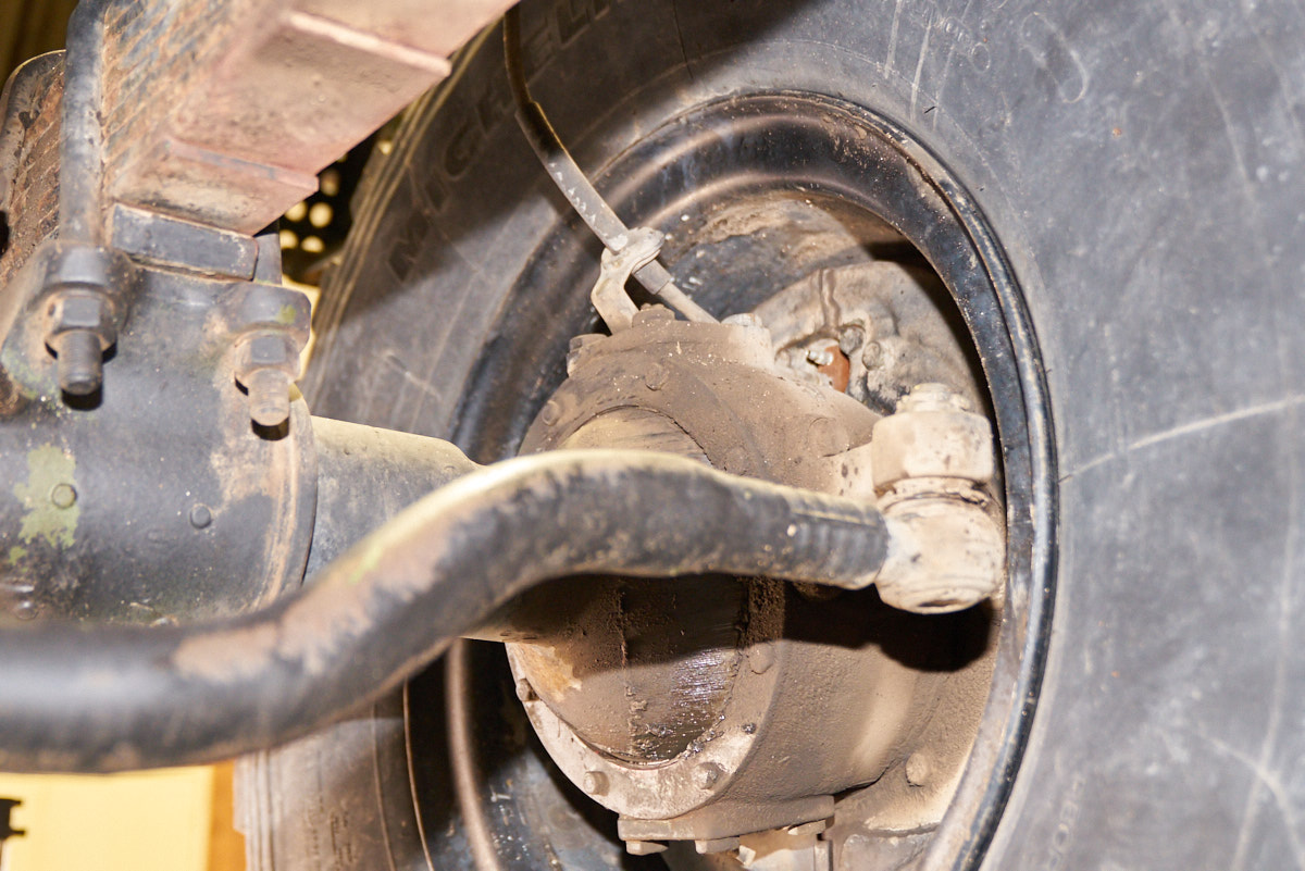 the tire crane only visible because the cab is tilted.