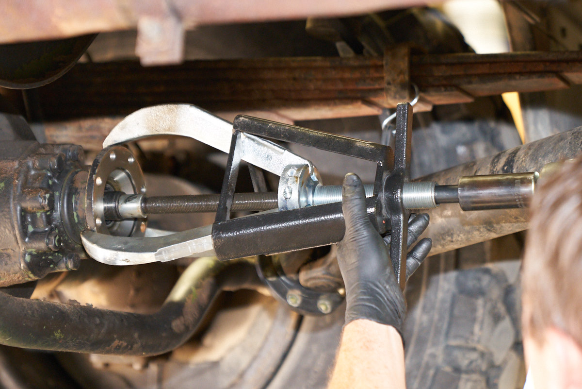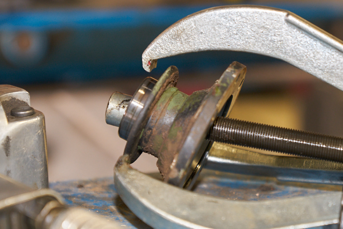 the nut has been removed, a gear puller is used to slip the collar