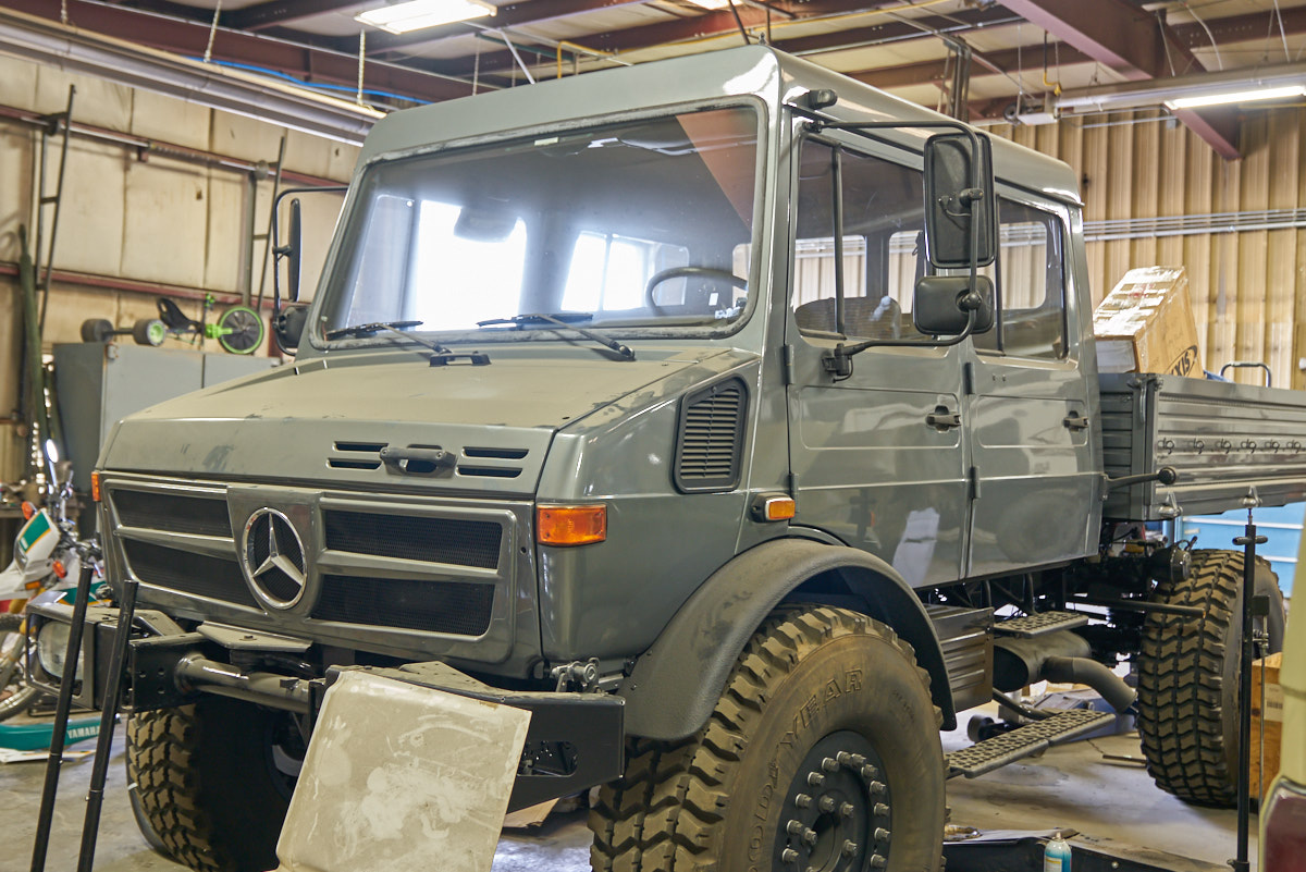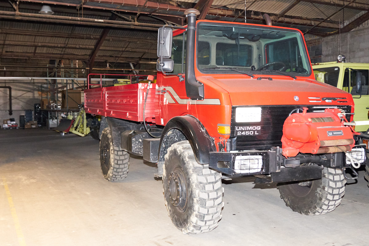 some of Terry Lee's active inventory of Unimogs and other
