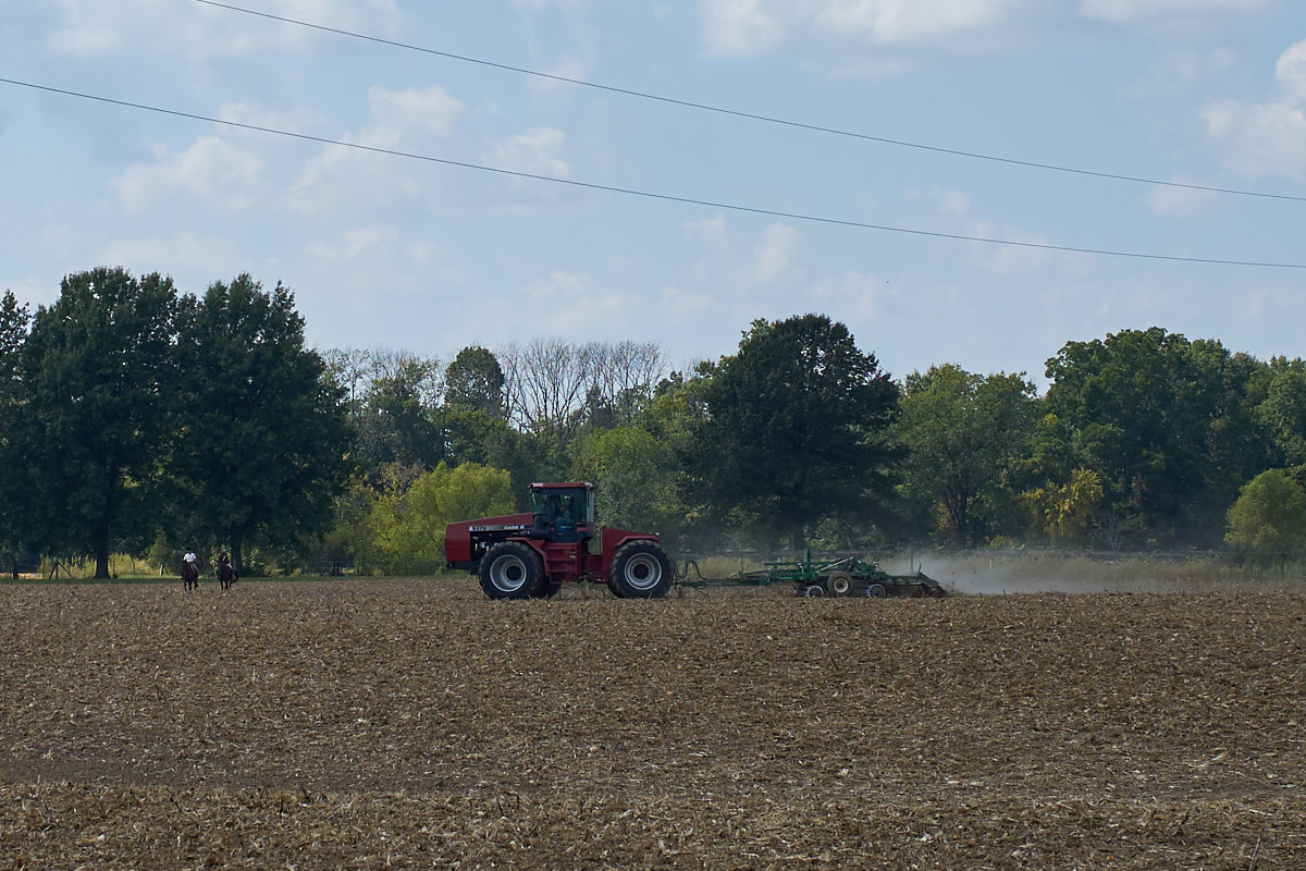 tractor was plowing old corn stocks into the soil.