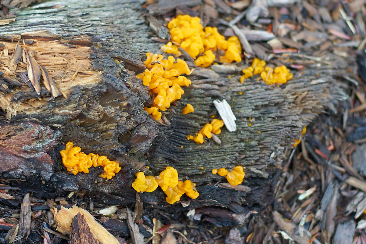 spotted a patch of brightly-colored fungus on this rotting stump.